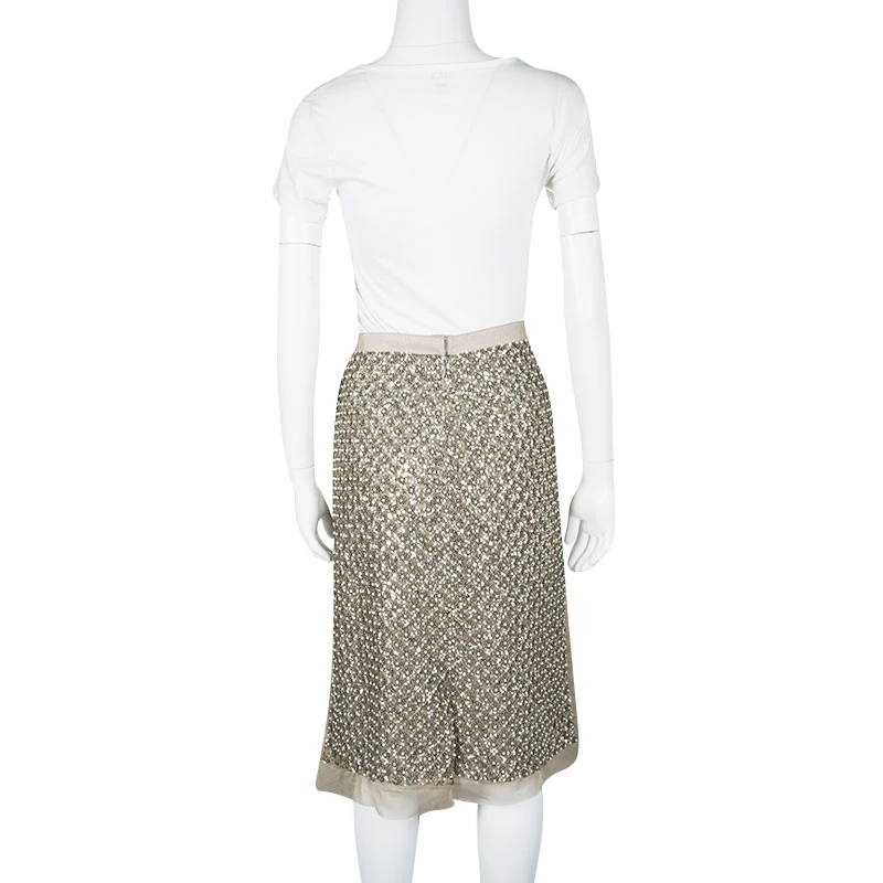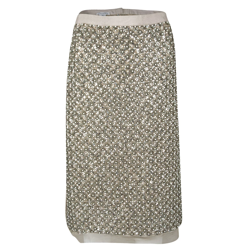 Lovely, isn’t it? This pencil skirt by Oscar de la Renta is so beautiful, you’ll look stylish every time you slip into it. Flaunting sequins all over, the skirt will give you a fabulous shape. All you got to do is pair it with a pair of beige pumps and a V neck satin top.