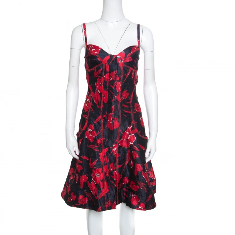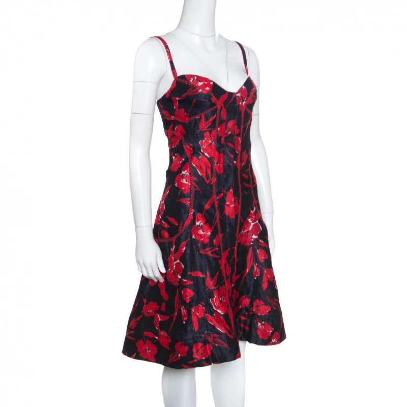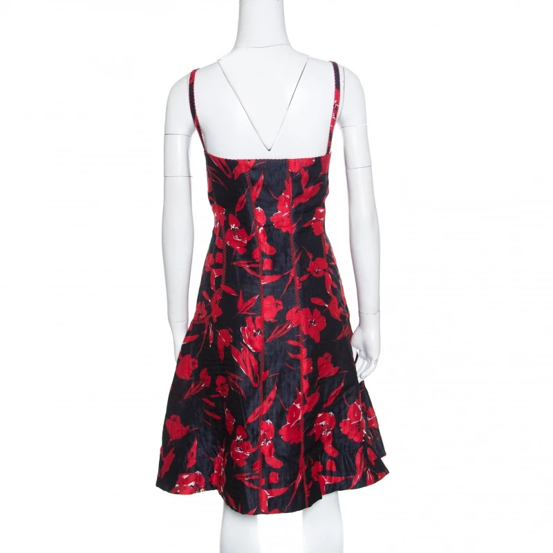 In a perfect blend of modern style and feminity, this dress from Oscar de la Renta’s Spring 2007 Ready-to-Wear is a creation for every woman’s closet. With red and black floral prints and embroidery, the sleeveless dress is a winner with pumps and sandals.