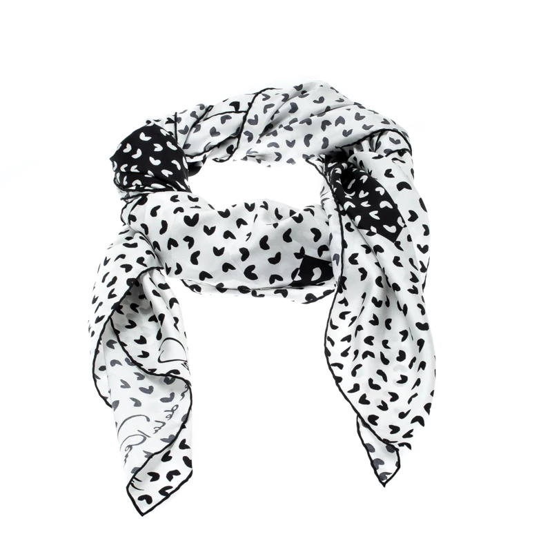 A prized buy for lovers of gorgeous scarves is this wonderful creation designed by Oscar De La Renta. This scarf, covered in back and white heart print and finished with hemmed edges, will change the way you accessorize. Go creative and start styling it with your bags or outfits.
