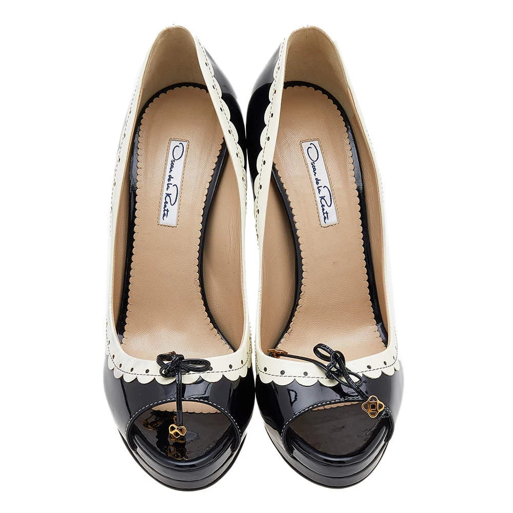 Breathtaking and whimsical, these pumps from Oscar de la Renta are here to make you fall in love with them! These pumps are crafted from patent leather and feature an elegant design. They flaunt peep-toes, comfortable leather-lined insoles, and 14 cm heels.