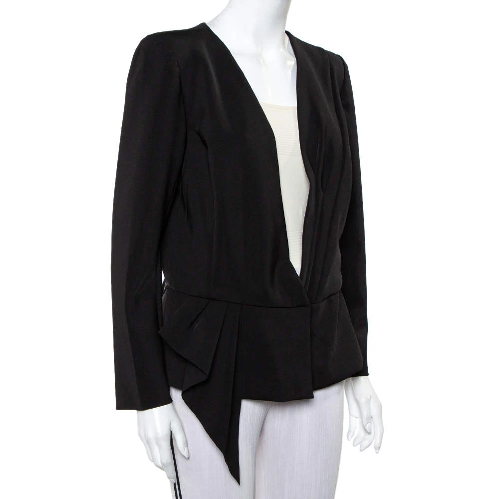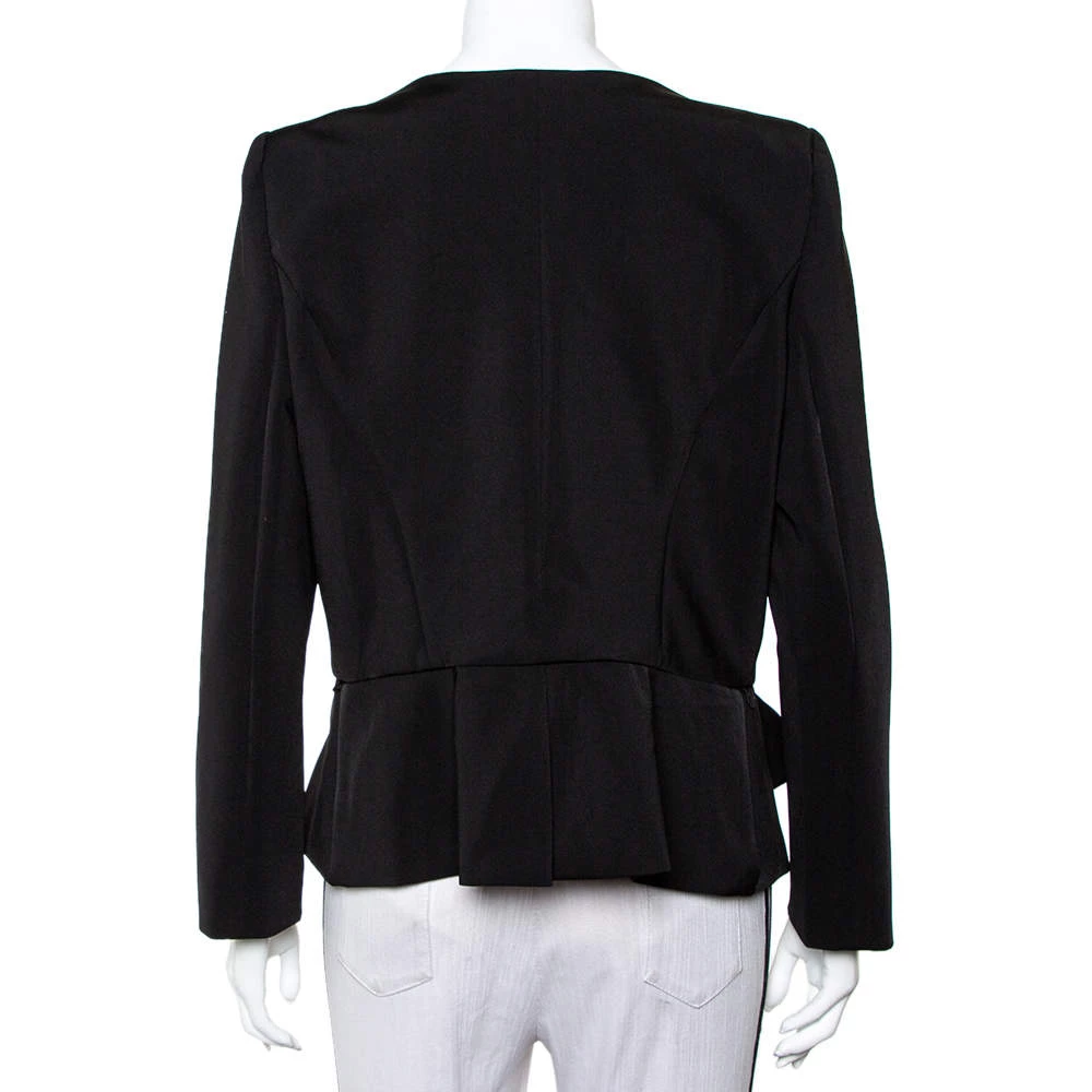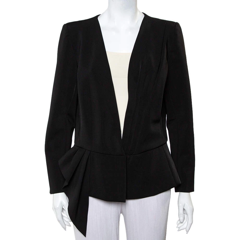 Make a refined statement with help from this Oscar de la Renta women’s black blazer. Tailored beautifully, the collarless blazer features draped detailing, long sleeves, and front button fastening.