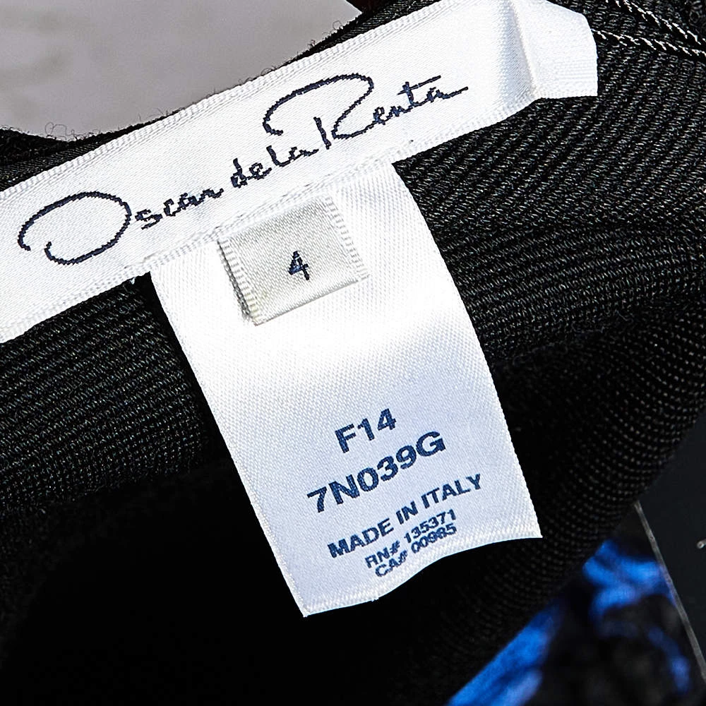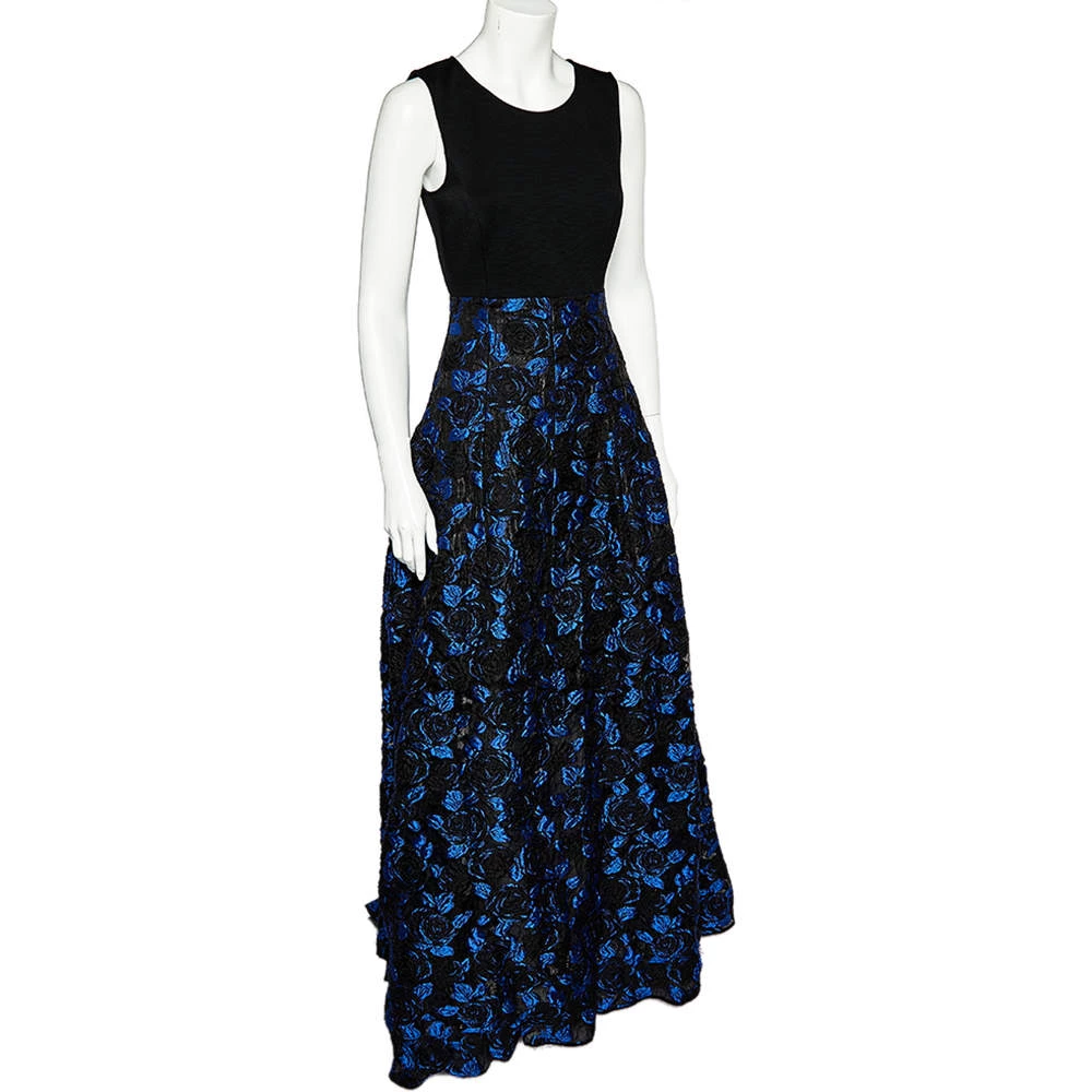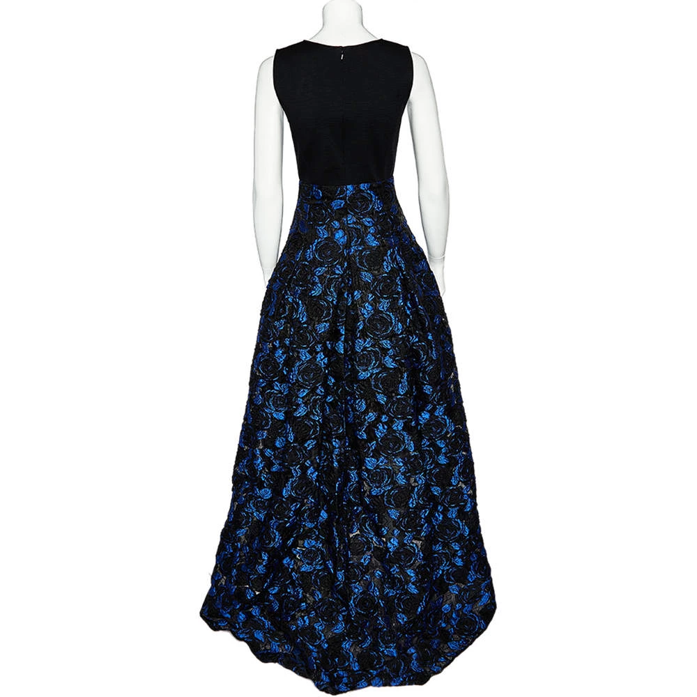 Created with a simple knit bodice and a floral-jacquard full skirt, this Oscar de la Renta sleeveless gown has a feminine look and a beautiful silhouette. It is sewn for a comfortable fit and finished with a zipper.