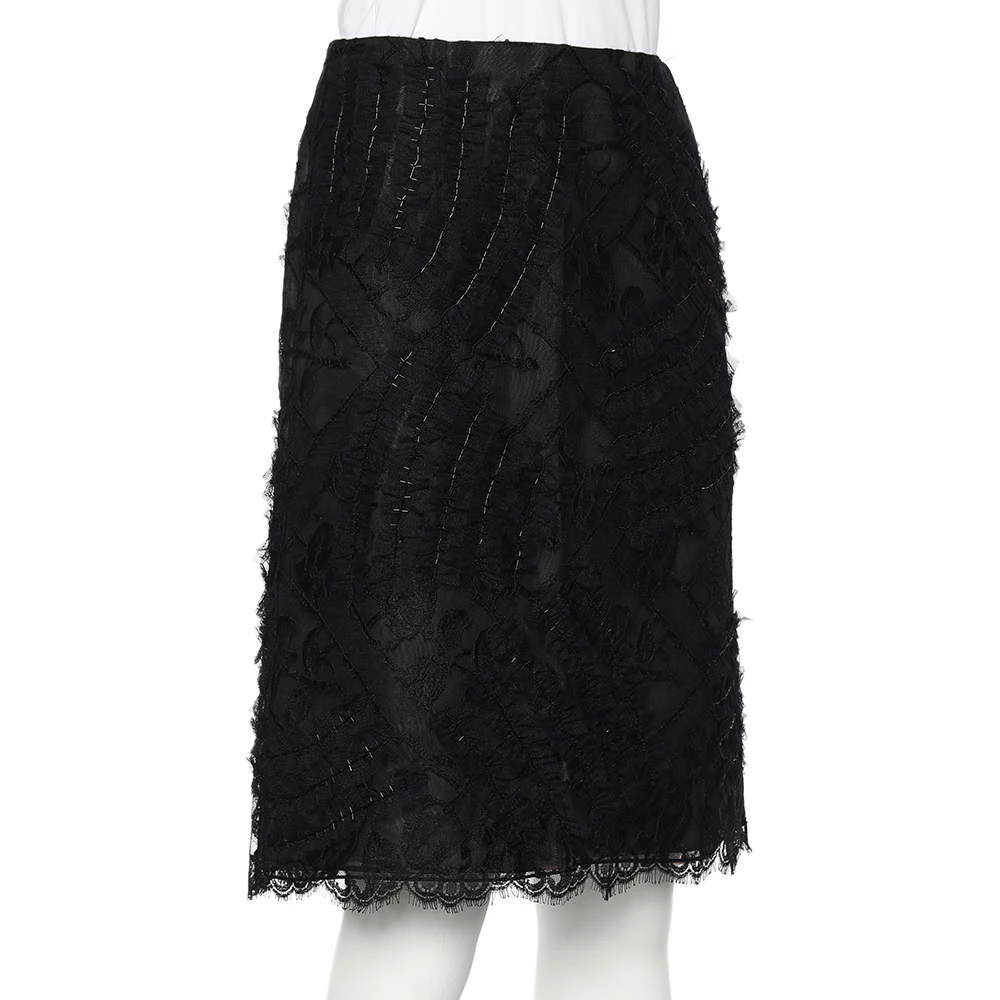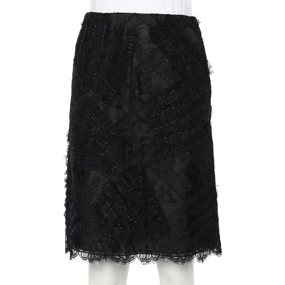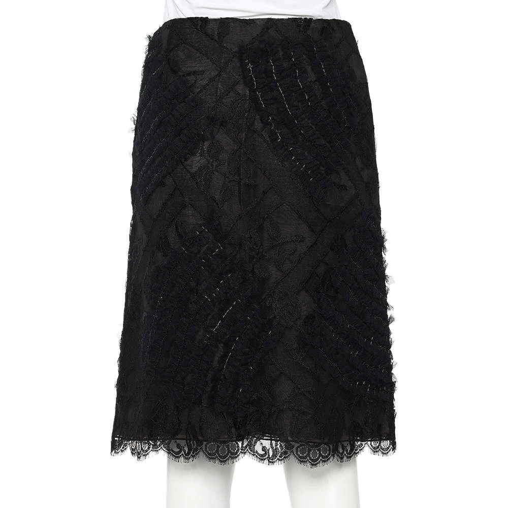Oscar de la Renta brings you this sophisticated pencil skirt that you can wear to formal as well as informal parties. Crafted from beautiful lace and tulle, it is embellished and flaunts a black hue that will look amazing with colorful tops and accessories.