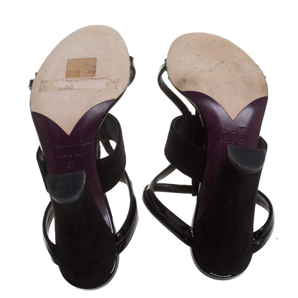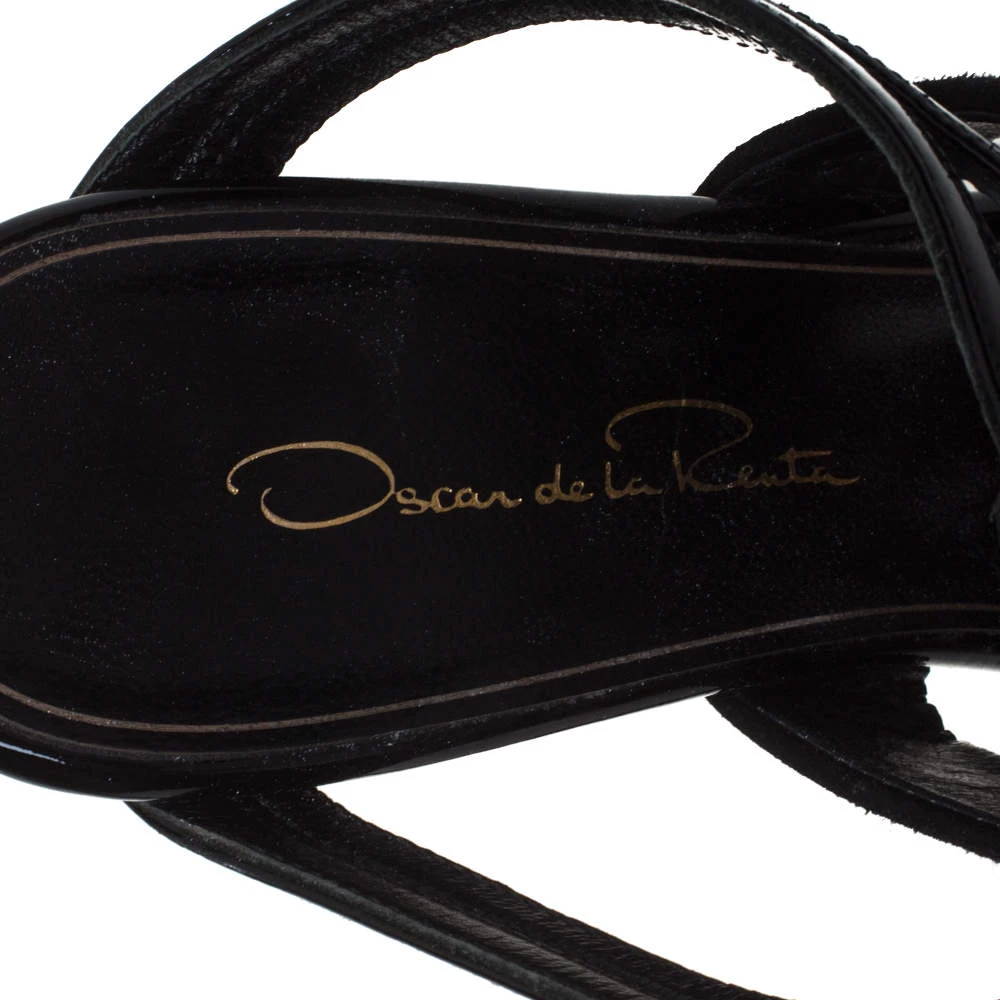 Oscar De La Renta presents you with chic sandals that will amp up your look immediately. Crafted from patent leather and suede, the contrasting fabrics form into a strappy design that elevates the look of the feet. Open toes and 10 cm heels complete these sandals elegantly.