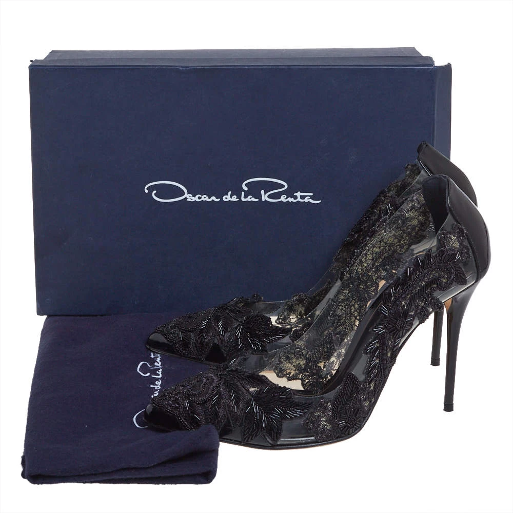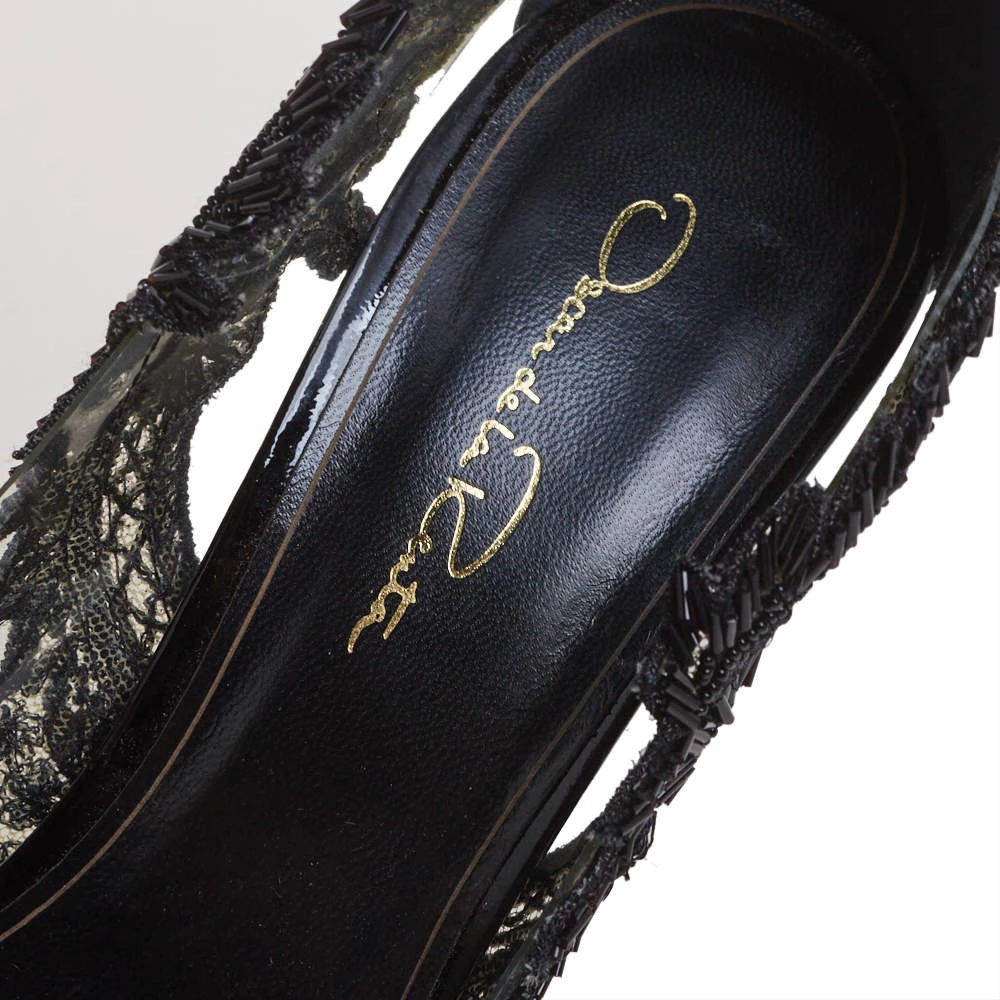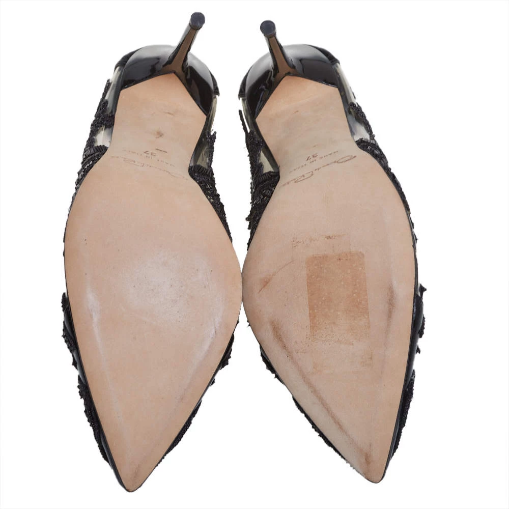 Some shoes protect our feet, but some shoes just make one feel magical at every step. These Oscar de la Renta pumps fall into the magical category as they are simple spell-binding. Their exteriors are detailed with patent leather, PVC, and embellishments laid in an artistic manner. Pointed toe boxes and 10.5 cm heels make them ready to be yours.