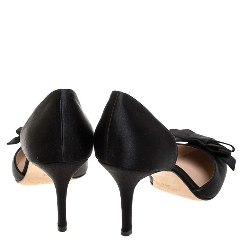 These stunning pumps by Oscar de la Renta are a must-have. Crafted in Italy, they are made from quality satin, they come in a classic shade of black. They are styled with bows on the uppers, 8.5 cm heels, leather lining, insoles and soles. They exude elegance and sophistication.