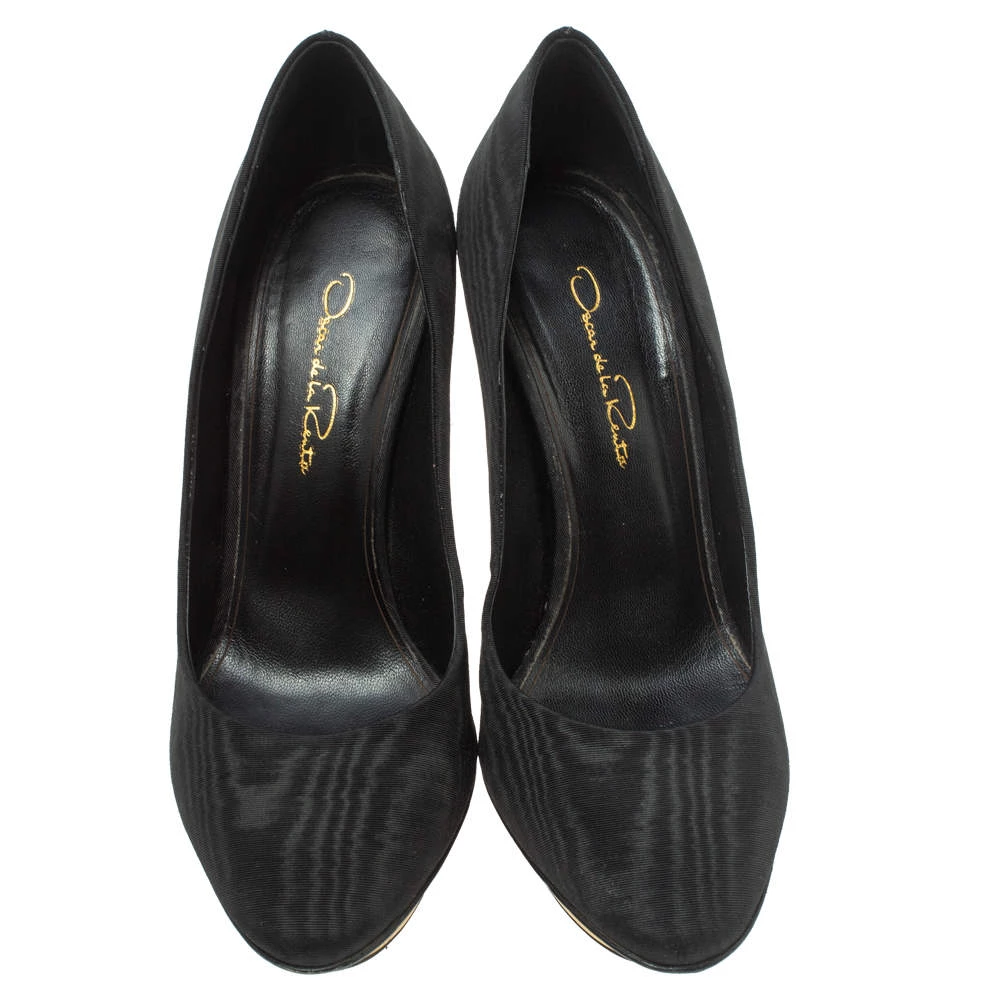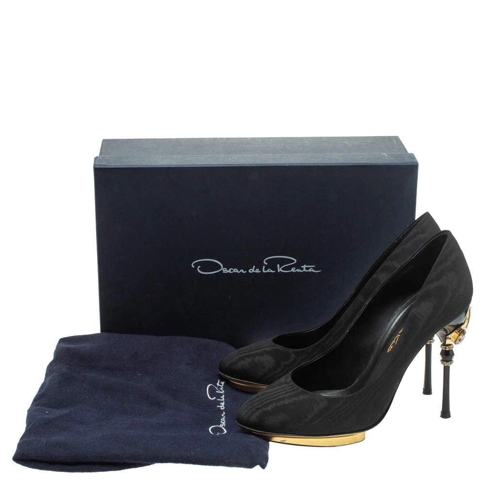 Chase your woes away by wearing this pair of magnificent pumps, that have been created from satin. They come in black with round toes and 12 cm embellished heels. You’re sure to feel your best while going about in this pair of classy pumps by Oscar de la Renta.