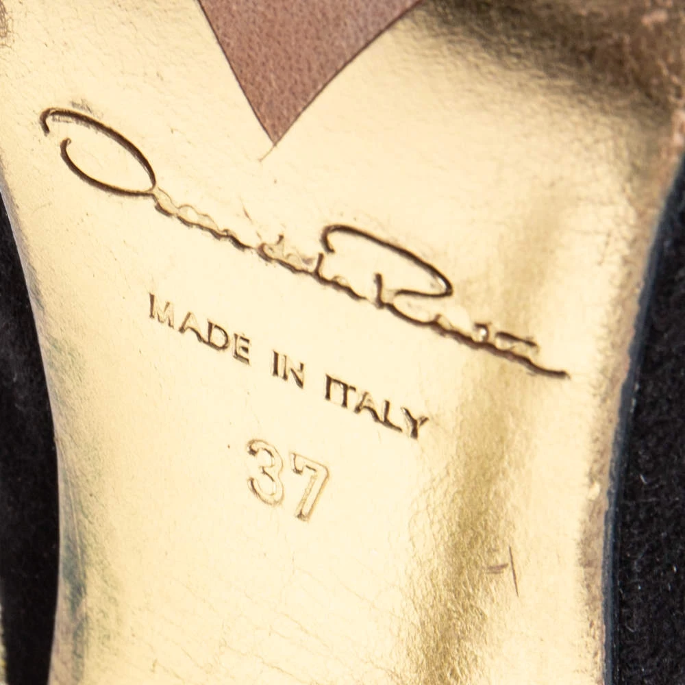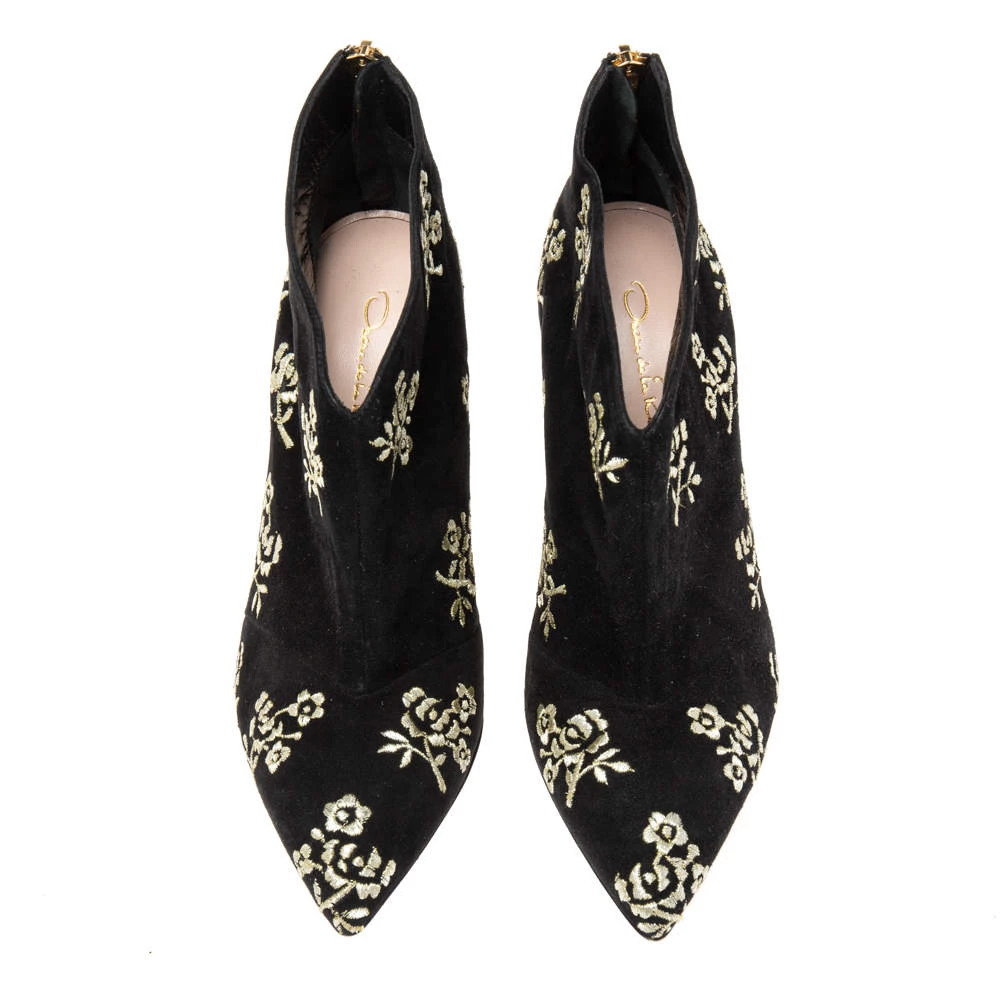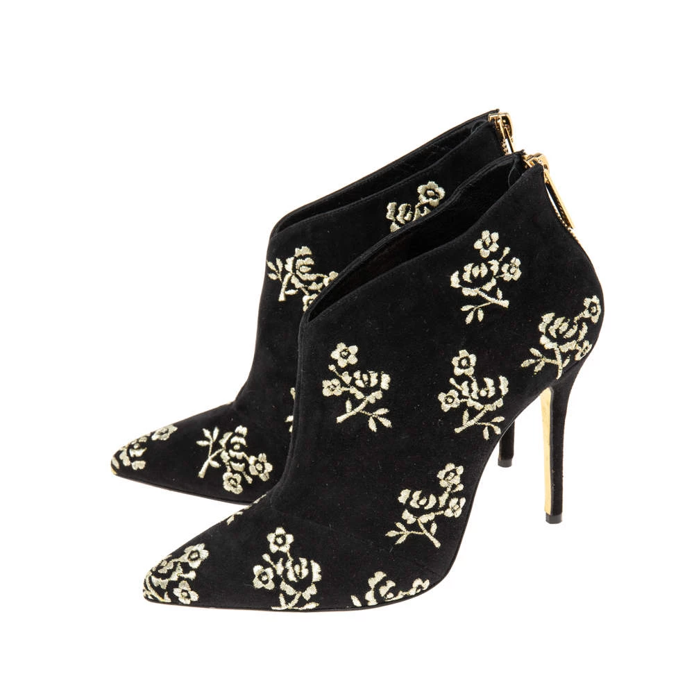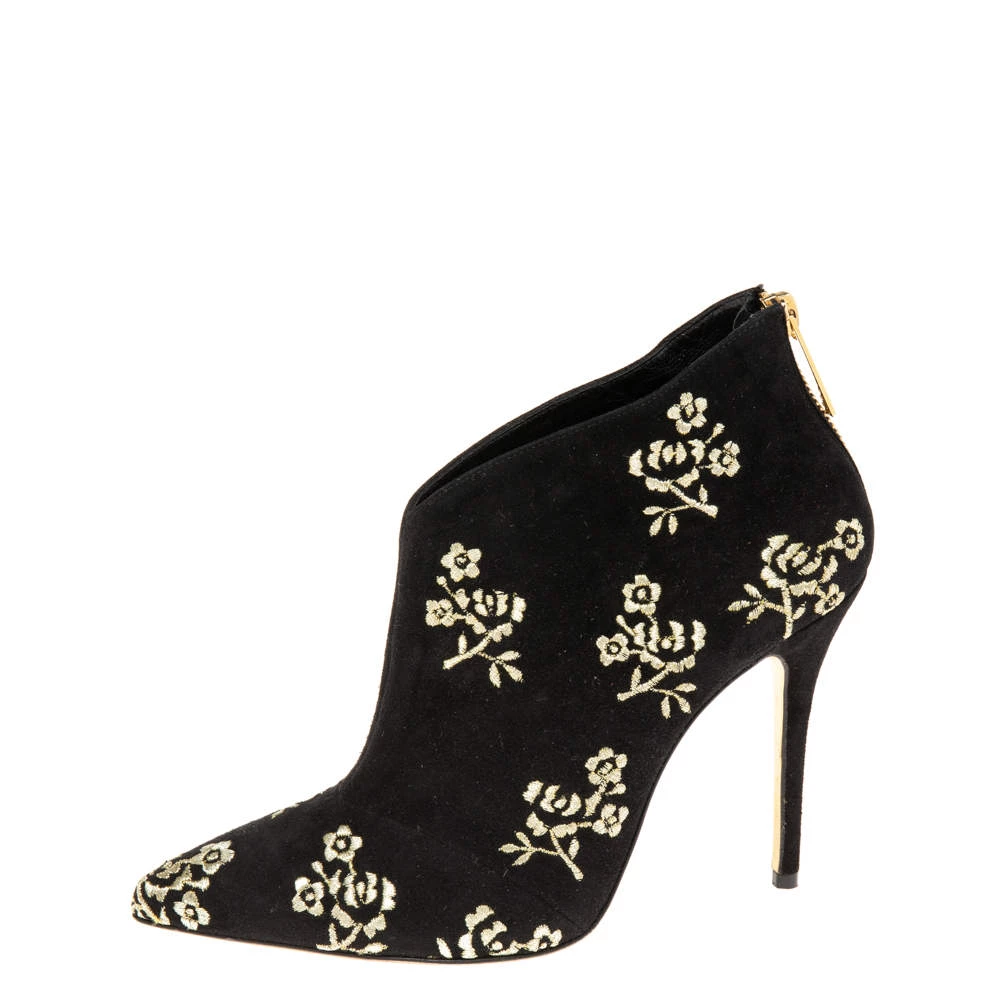 Bring unending femininity, finesse, and skill to your feet with these boots from Oscar de la Renta. They are meticulously created using black suede, which is enriched with intricate floral embroidery. Their silhouette is enhanced with pointed toes, gold-tone hardware, and 10 cm heels. Grab these beauties now.