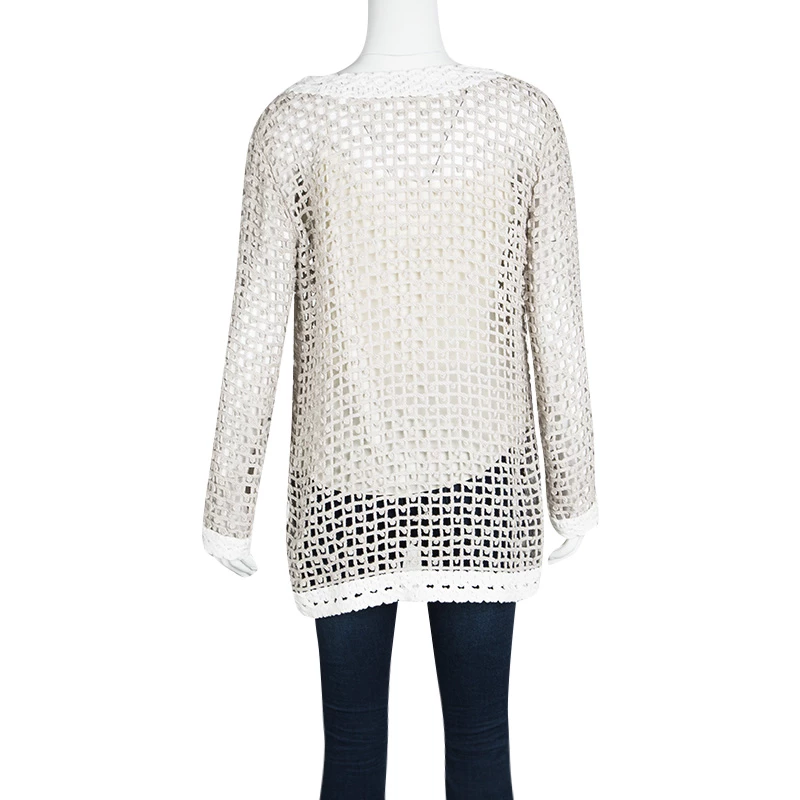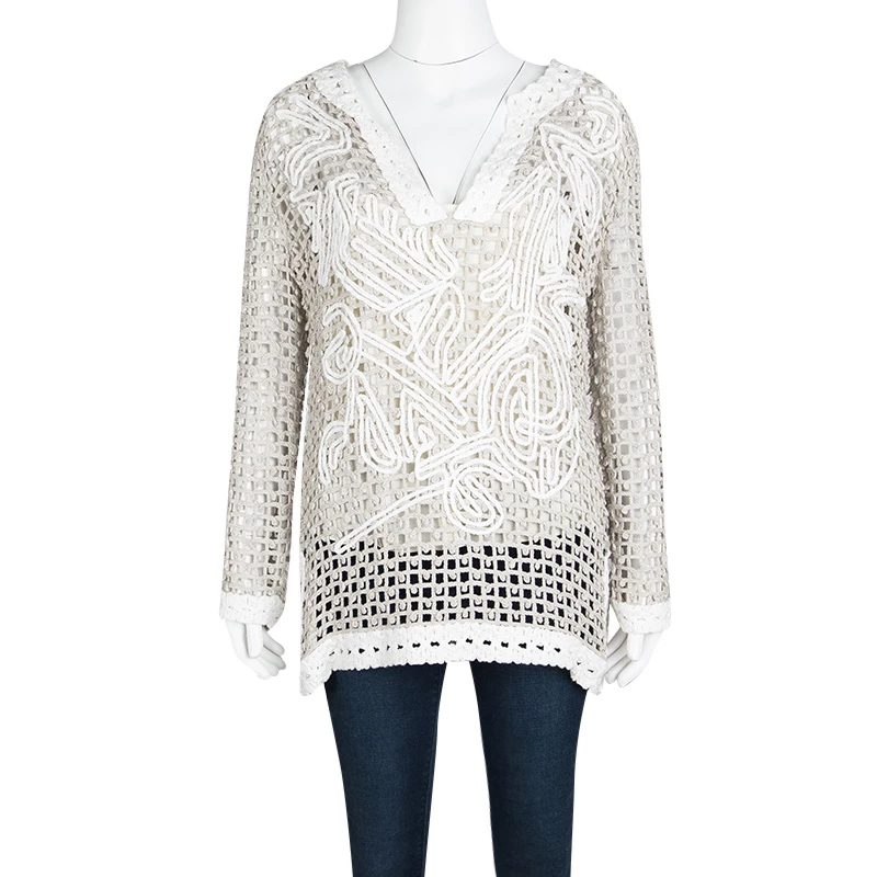 This knit top from Oscar De La Renta is such a stunner, you’ll instantly fall in love with it. The blouse is made of cotton and it flaunts long sleeves and a chunky crochet design. Pair it with jeans and metallic pumps for special outings with friends.
