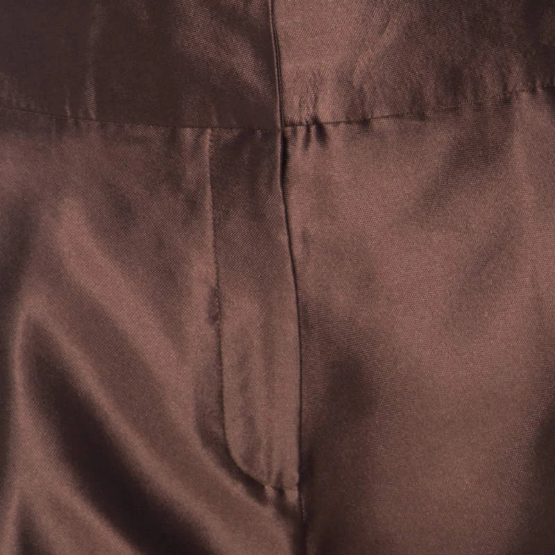 Oscar de la Renta’s brown trousers are tailored with soft silk and designed with wide legs. The easing silhouette of these trousers makes them a comfortable piece of clothing which, when paired with a fitted blouse, gives you a sharp formal look.