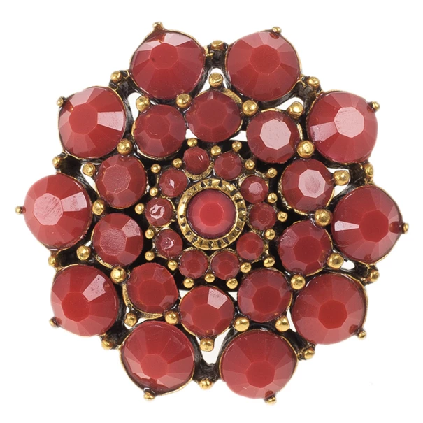 Oscar de la Renta’s legendary genius was embodied in his jewelry and fashion lines. Part of the SS12 jewelry collection, this ring will make a statement with a style. Its red cabochons designed with an over-sized flower-like shape coupled with gold-tone hardware and an internal adjustable band.Original Retail Price: US $225