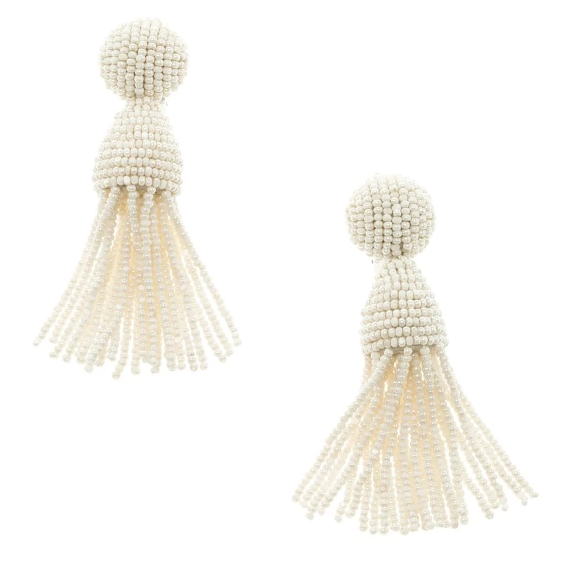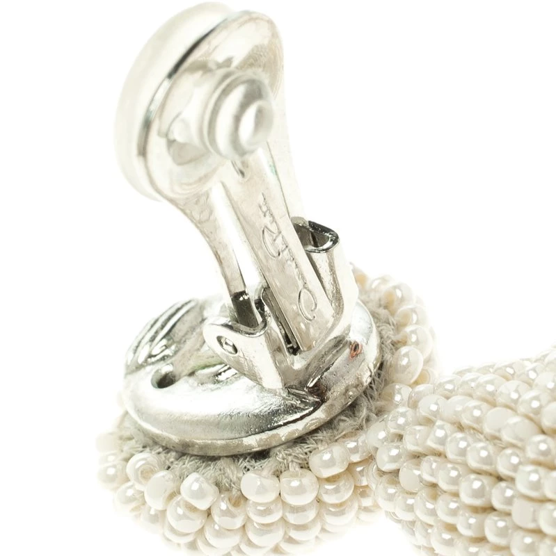 This Oscar De La Renta pair is so pretty, you’d never want to part with it. Made of gorgeous cream beads and held by silver-tone metal, they’ve been styled as dangling tassels and completed with padded clip backs. Feminine and elegant, these earrings will complement all your vibrant dresses and LBDs.