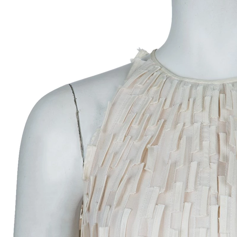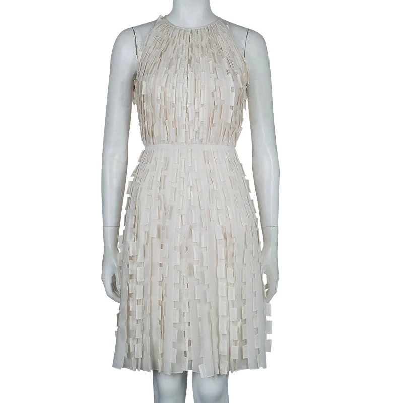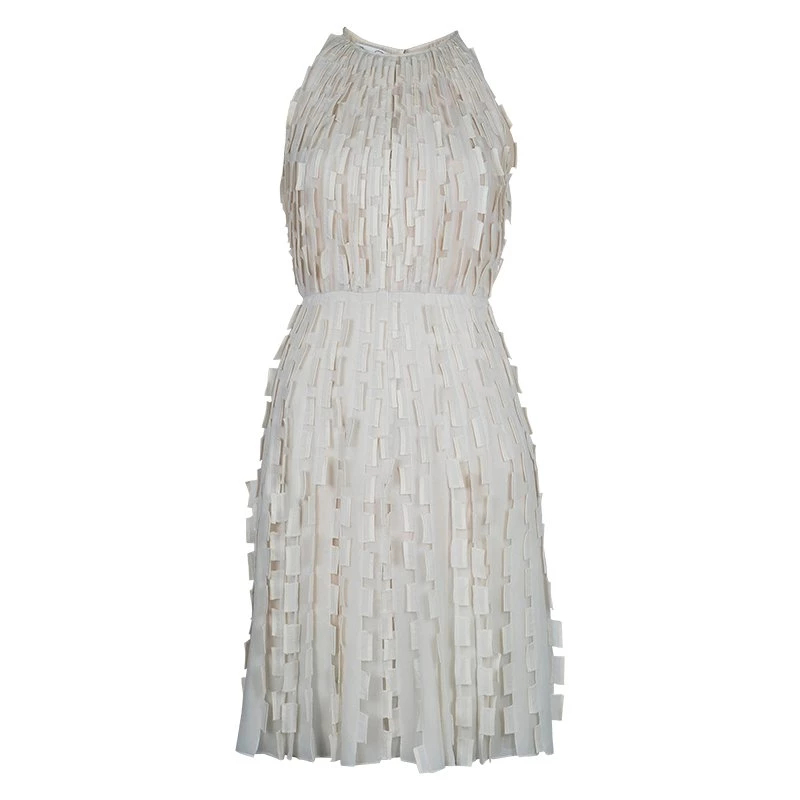 This beyond beautiful and mesmerizing sleeveless dress by Oscar de la Renta will leave the crowd gazing at you in awe. Crafted with silk, it features eye catching appliqué texture to count on along with a laudable round neckline. A party perfect dress!