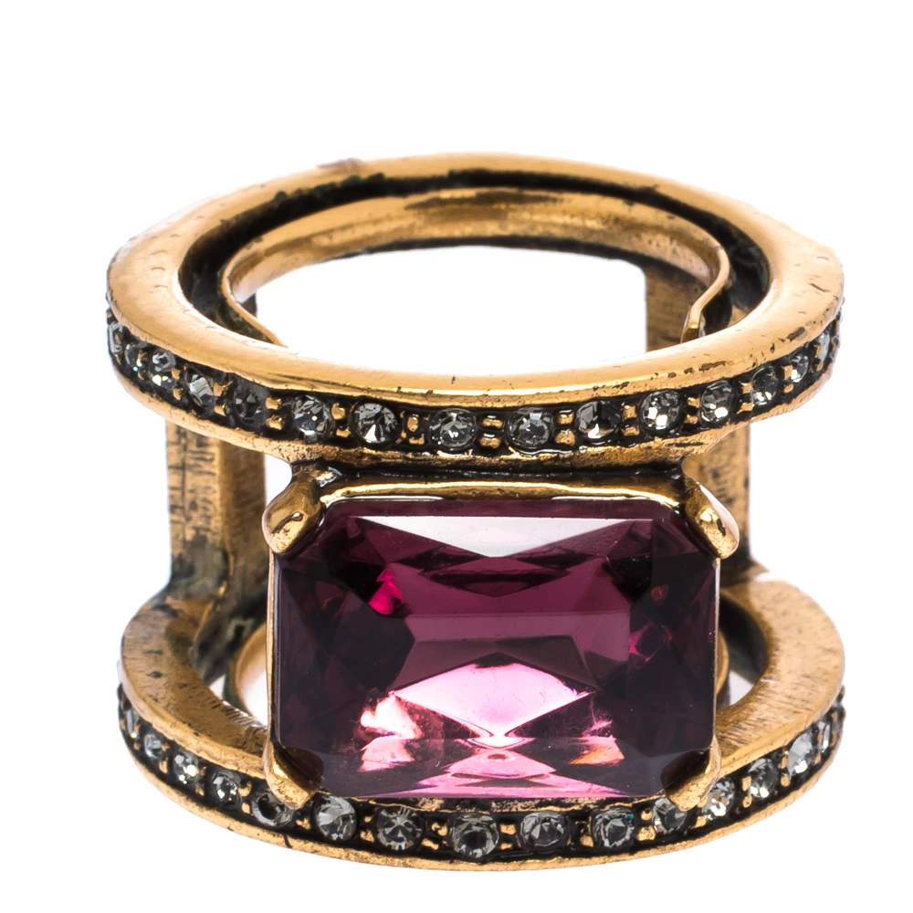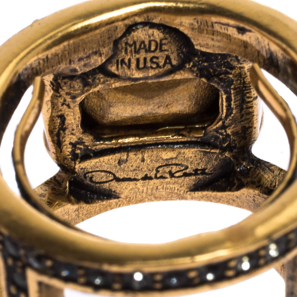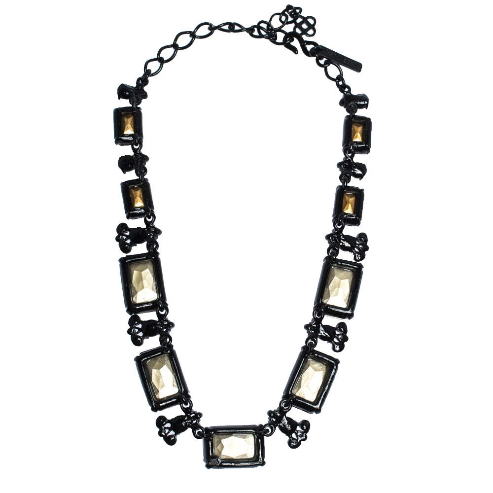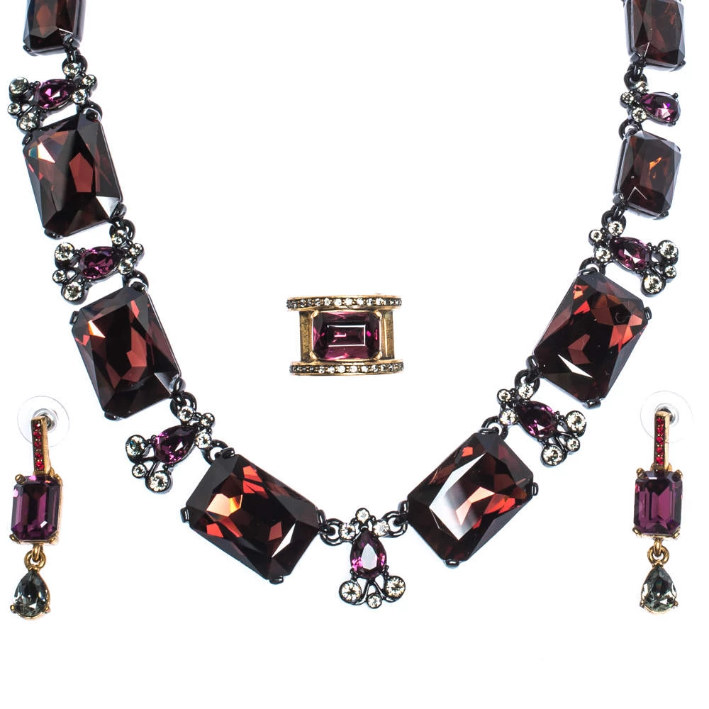 If you fancy donning an understated style that exhibits your elegance and refinement in equal proportions, then this Oscar de la Renta set of ring, earrings and necklace is the perfect choice for you. The necklace, with easy hook closure, is assembled with crystals. Earrings are designed in a dangle silhouette and the ring carries a notable stud at the centre with small crystals set on the band.