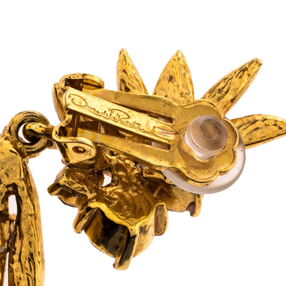 Delicately designed, these clip-on earrings from Oscar de la Renta feature crystals on a gold-tone setting. Feminine and charming, they carry a beautiful design of tropical palm leaves. This gracefully designed pair of drop earrings go very well with an evening dress.