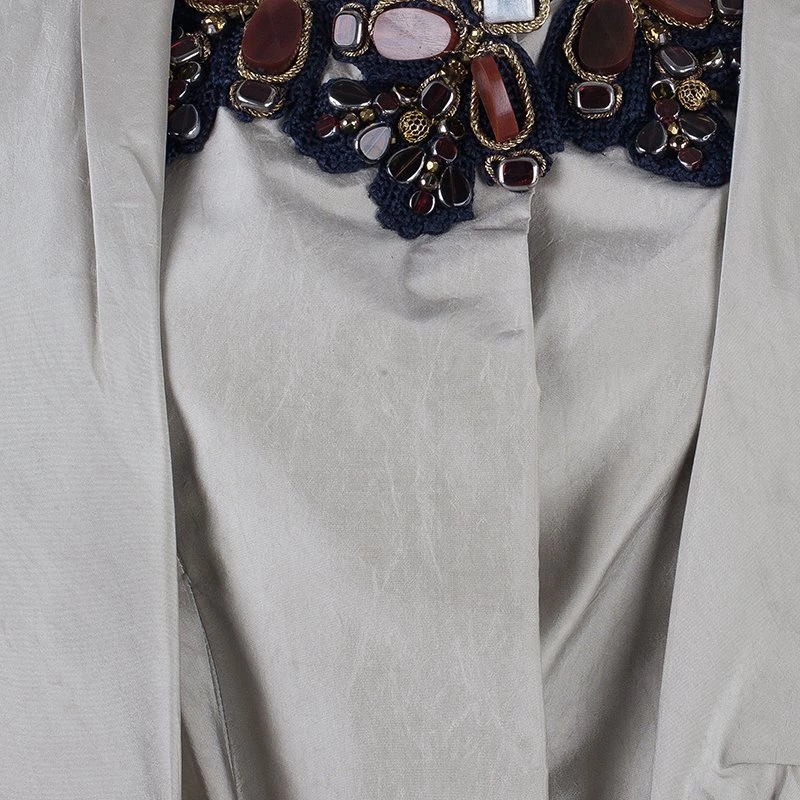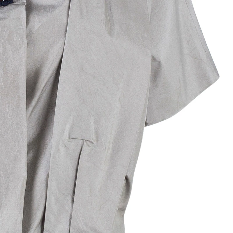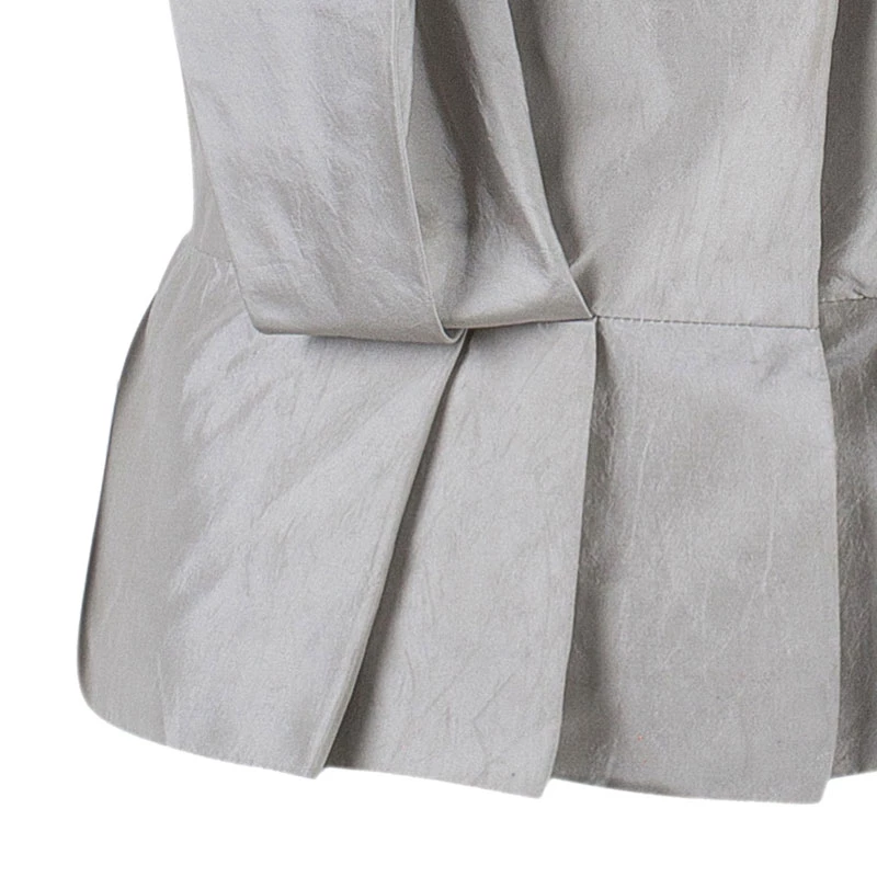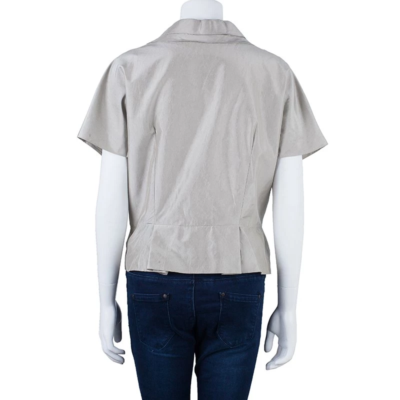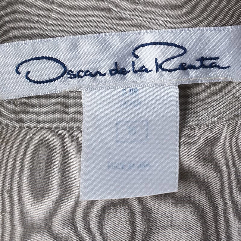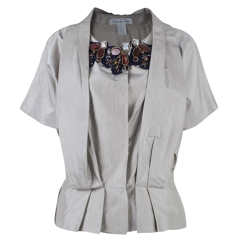 Fun and chic, this Oscar de la Renta Top will be perfect for any occasion. Crafted from silk in a lovely shade of ivory, the shiny top features a shrug inspired design, crystal embellished neckline, short sleeves and pleats it the front. Pair yours with a stylish skirt and get noticed everywhere.