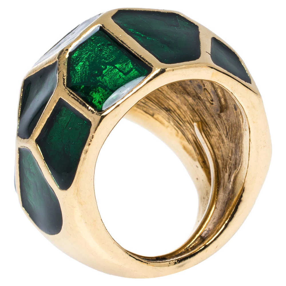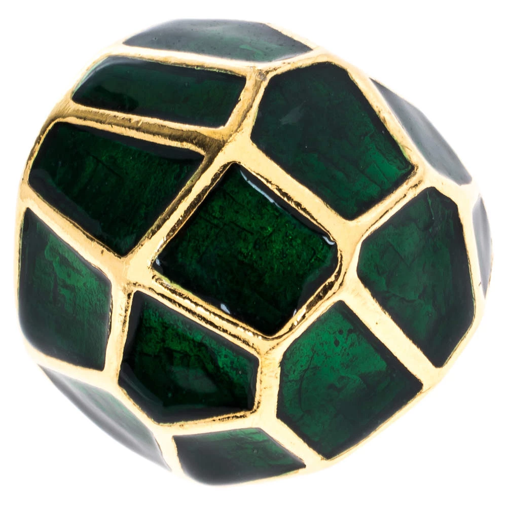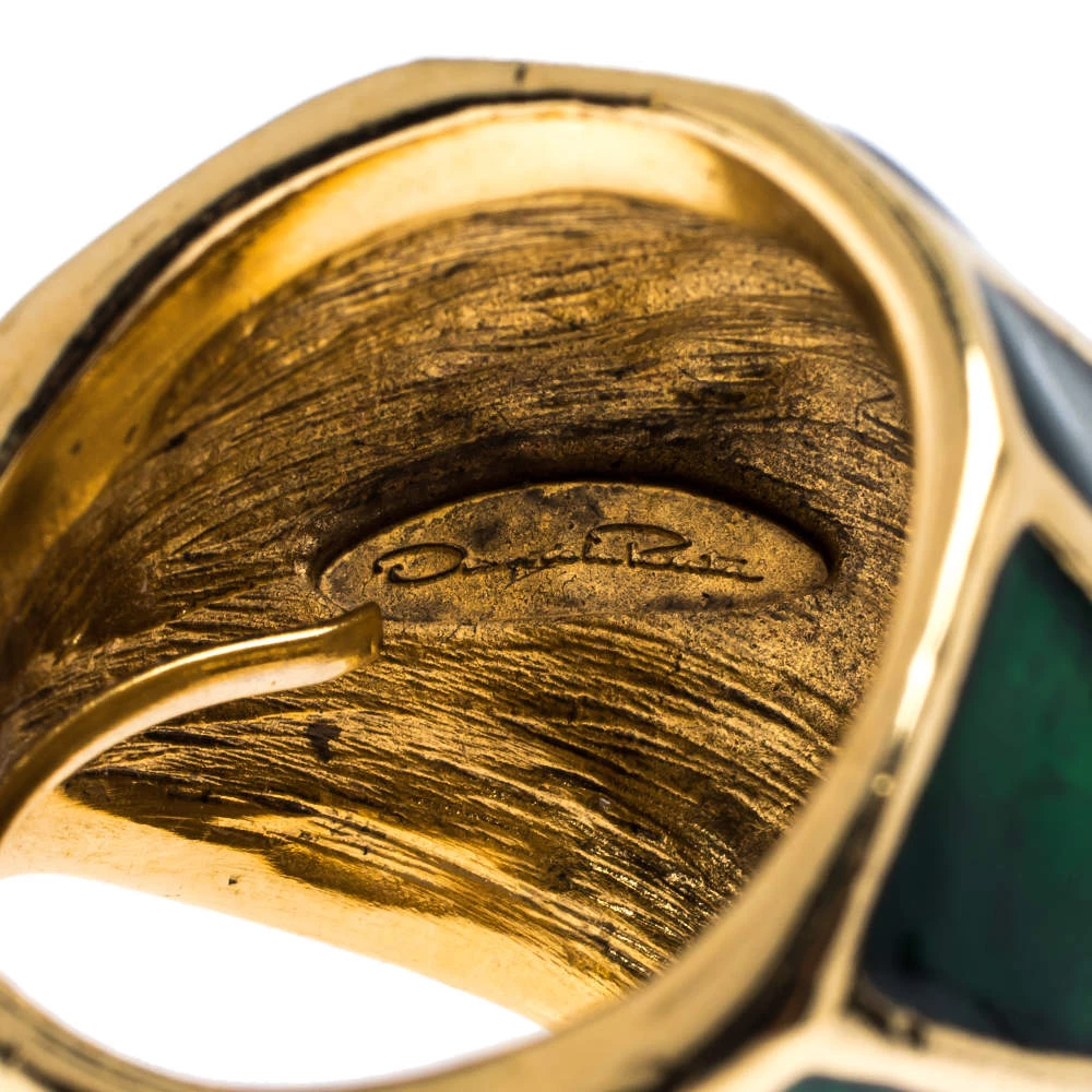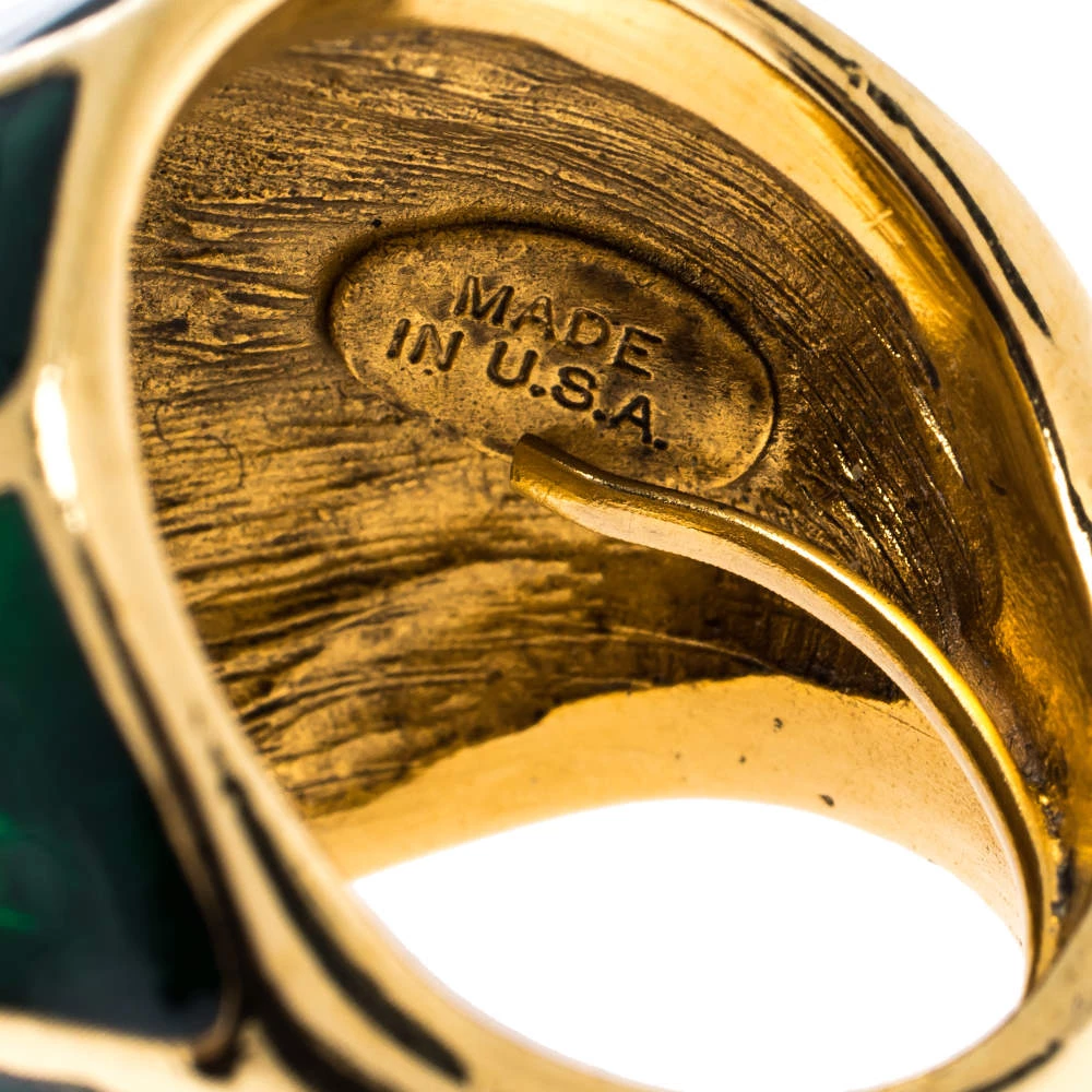 It is definitely love at first sight with this Oscar de la Renta cocktail ring. Beautifully crafted from gold-tone metal, it comes designed in a dome shape. The head of the ring flaunts green enamel detailing in a lovely design. Picture yourself putting it on with your evening dresses and rest assured that it will bring out the best in you.
