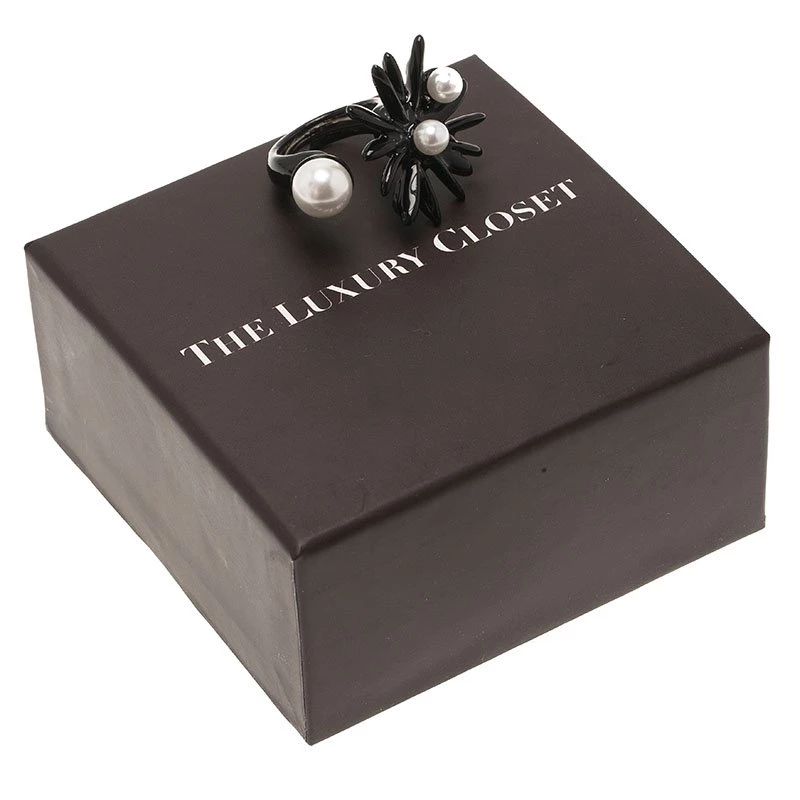 This Oscar De La Renta’s ring boasts an elegant flower design with meticulously placed faux pearls. Crafted from enamel, this flower ring is easy to complement with any evening wear from dresses to blouses and skirts.
