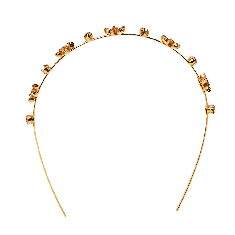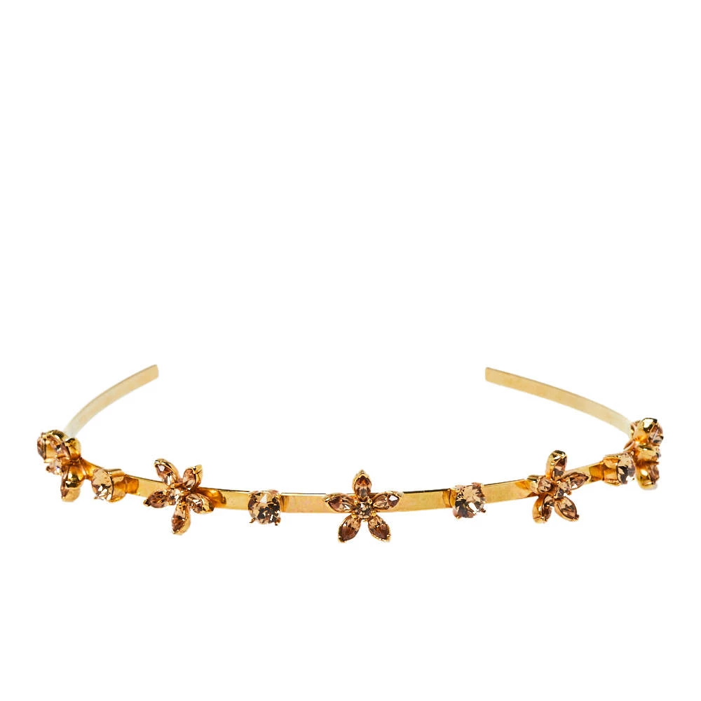 Sparkly crystals and flower motifs are employed to complete this pretty hair band by Oscar de la Renta. The gold-tone metal creation will elevate even a simple hairstyle.