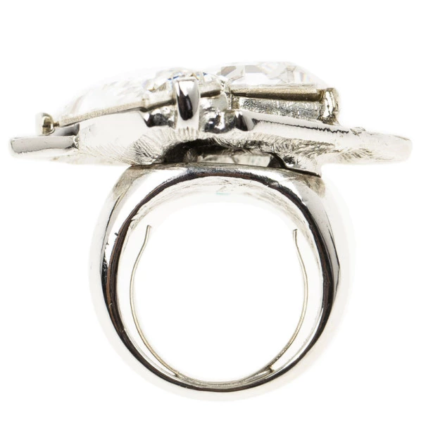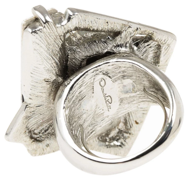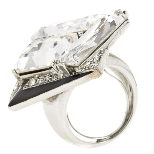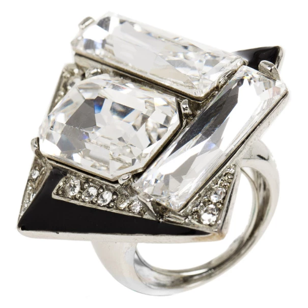 Matched with a pair of stunning earrings, this Oscar de la Renta ring will make you stand out and add a bold look to your ensemble. Its geometric design brings together oversized baguette-shaped crystals and black enamel detailing for a classy combination of black and silver.