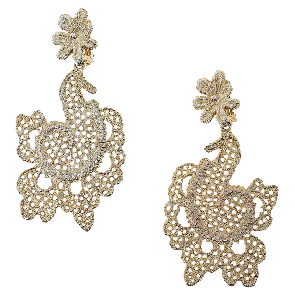 Breathtakingly beautiful, these clip-on earrings from Oscar de la Renta are truly one of a kind! They have been crafted from gold-tone metal and designed with intricate filigree work. They’ll match well with most of your ensembles and will prove to be a worthy investment.