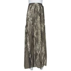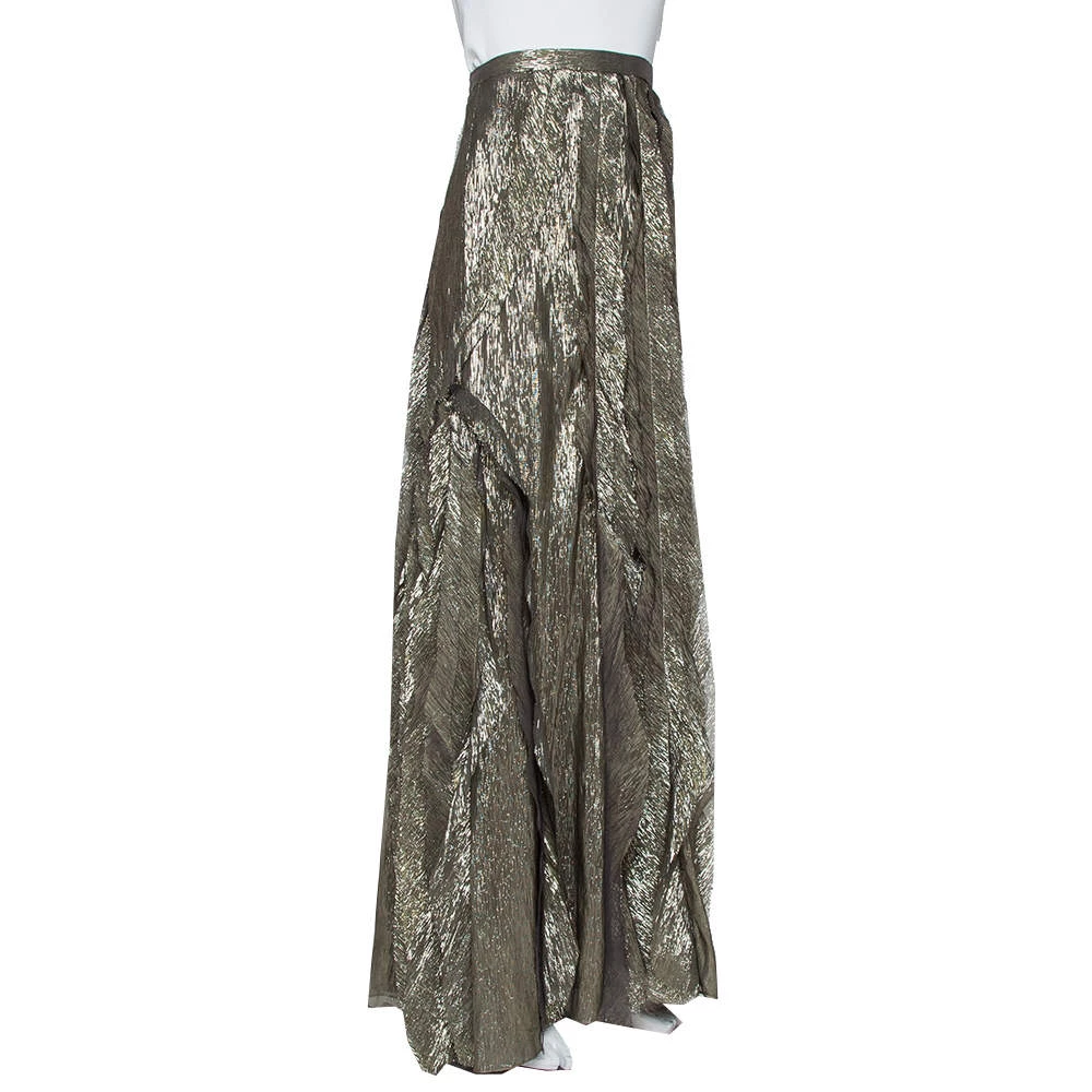 Oscar de la Renta is famous for creating clothes high on opulence. This maxi skirt comes covered in gold lurex creating a glamorous look. Made from a quality silk blend, the creation has a great feel and an elegant appeal.