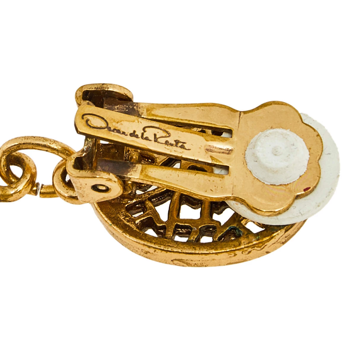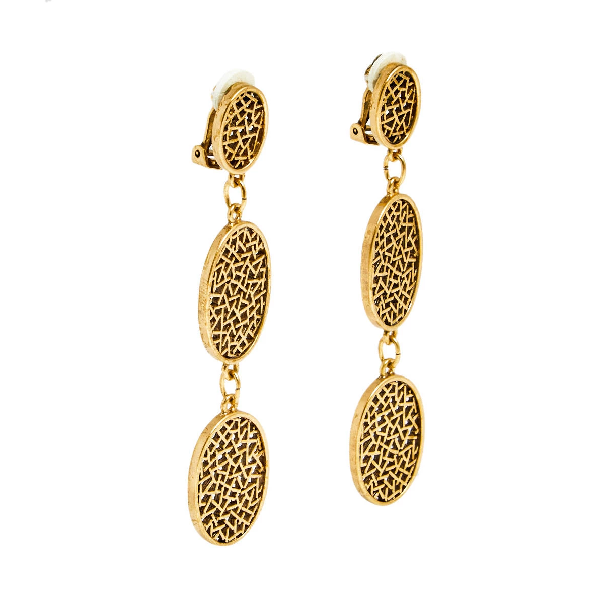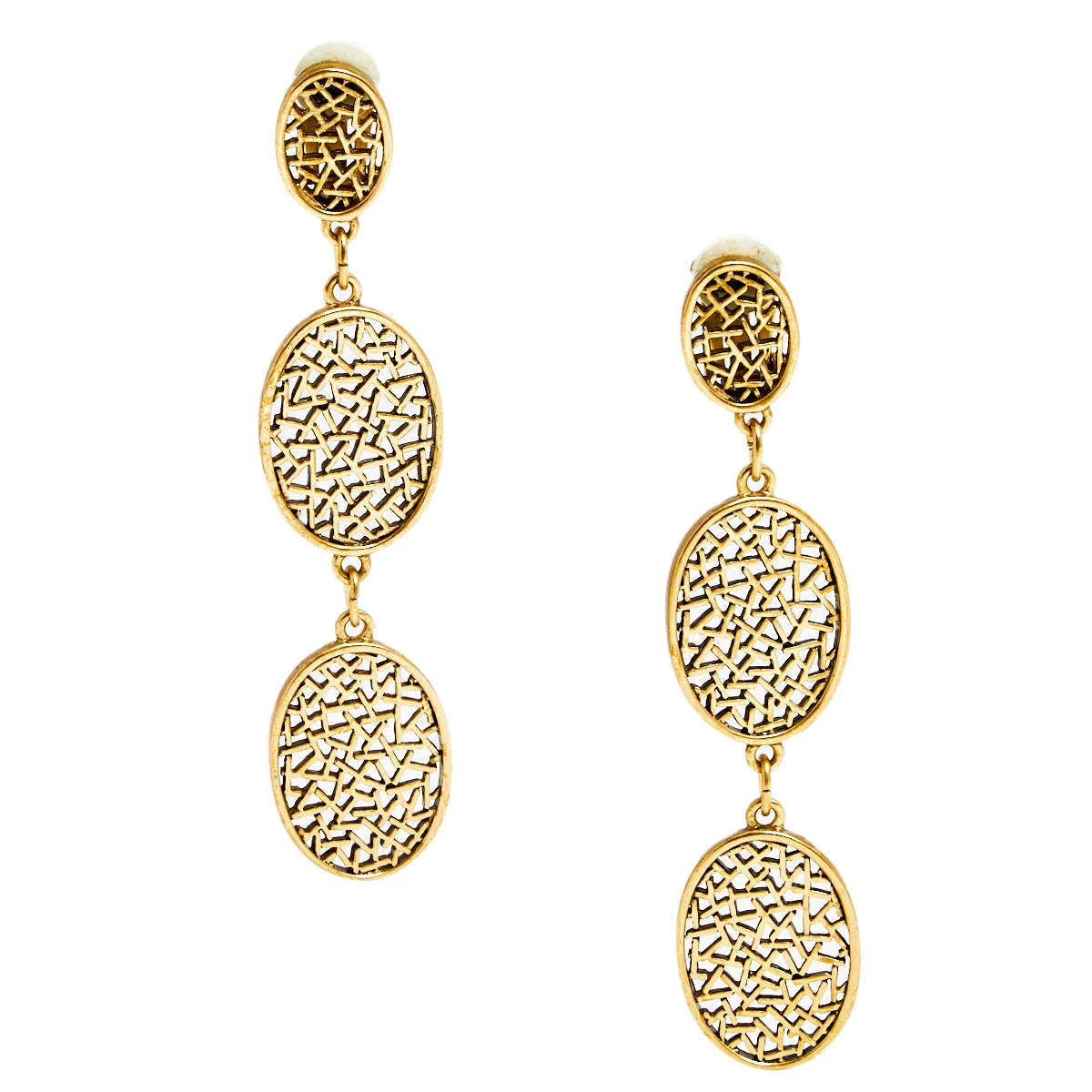 Designed with gold-tone metal, these clip-on earrings from Oscar de la Renta will complement a day or evening look. They have a drop design of three oval motifs. Balance your outfits with this elegant pair.