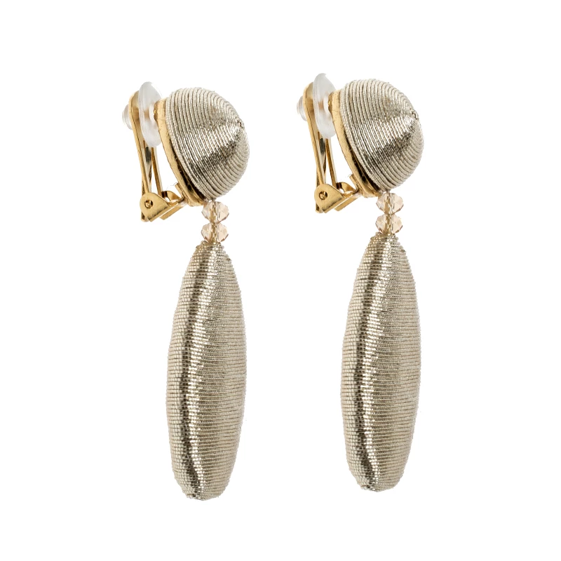 Be it day or night, these simple yet elegant earrings will make you shine no matter what the occasion is. Coming from the house of Oscar De La Renta. This pair features a clip-on style with gold-tone threaded drop and completed with gold-tone detailing. Wear with a simple blouse or dress to glorify the look.