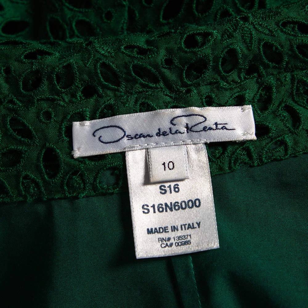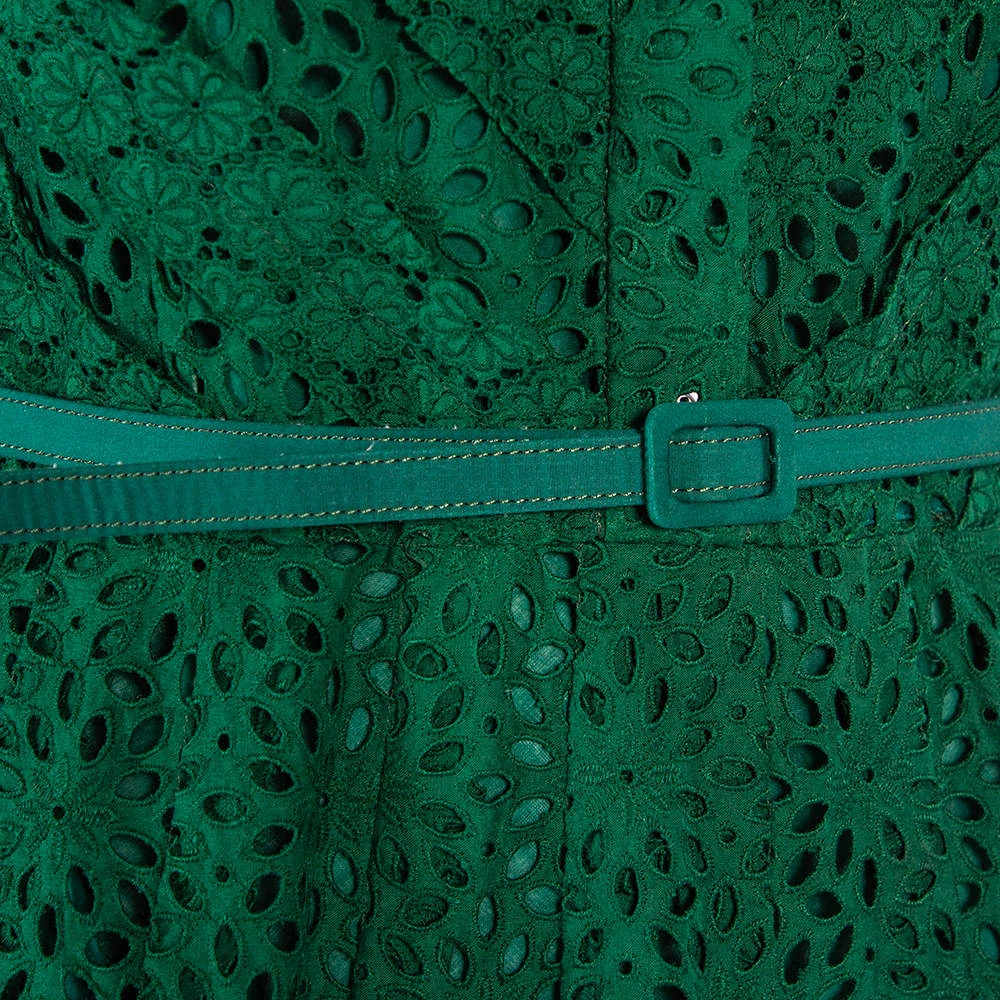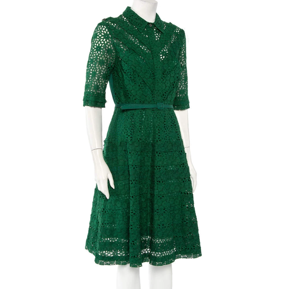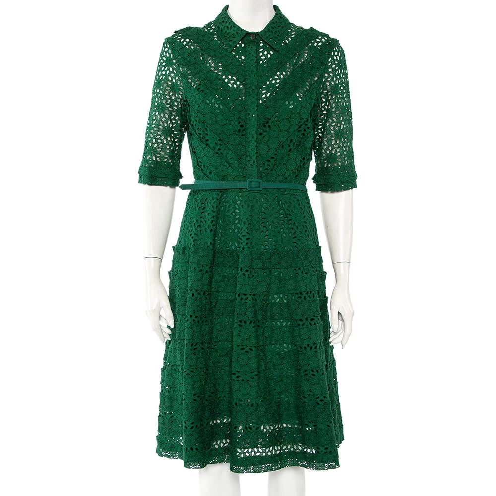 Oscar de la Renta has a chic and feminine spirit that is translated effortlessly in this dress. It has been skillfully made from dainty lace and features a belted waist. Style this number with high heels and a box clutch.