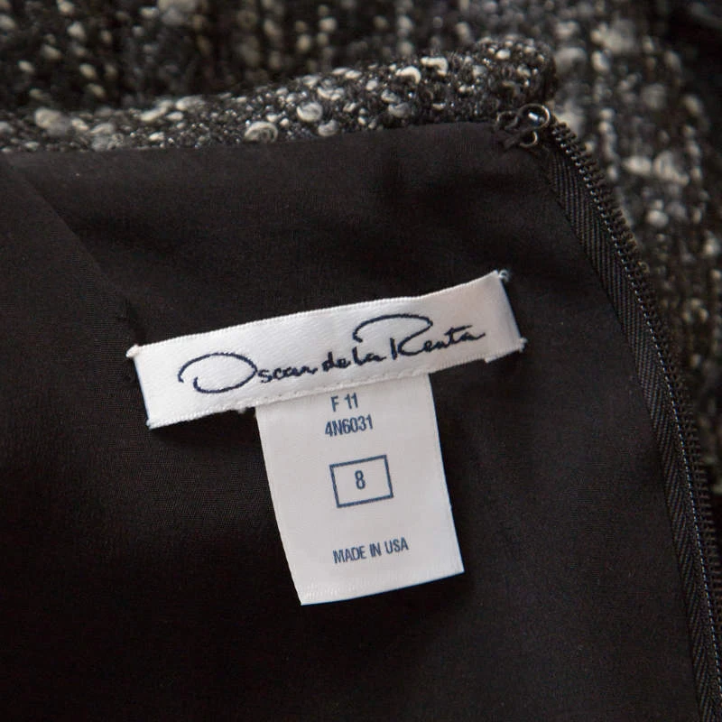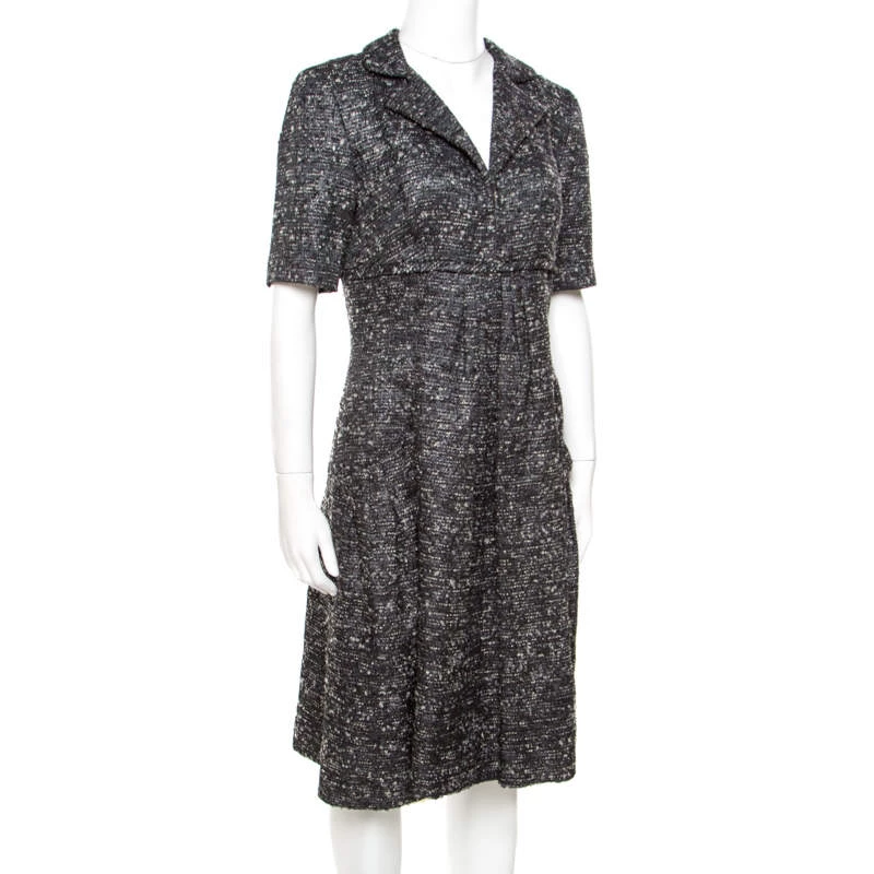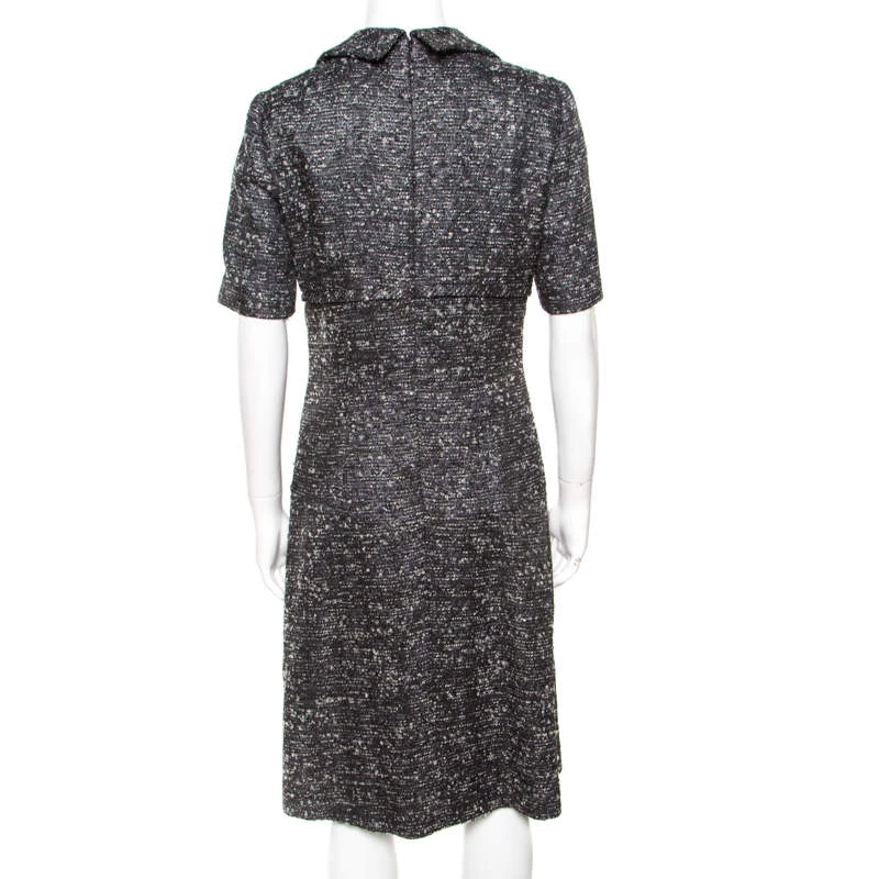 For times when you want to feel like your best self, Oscar de la Renta dress will come to your assistance. This pretty creation is dripping with lurex details all over exuding party-ready glamor and is finely cut to a demure shape featuring short sleeves and a collared neckline; it falls to an appropriate length and is secured by a zip fastening.