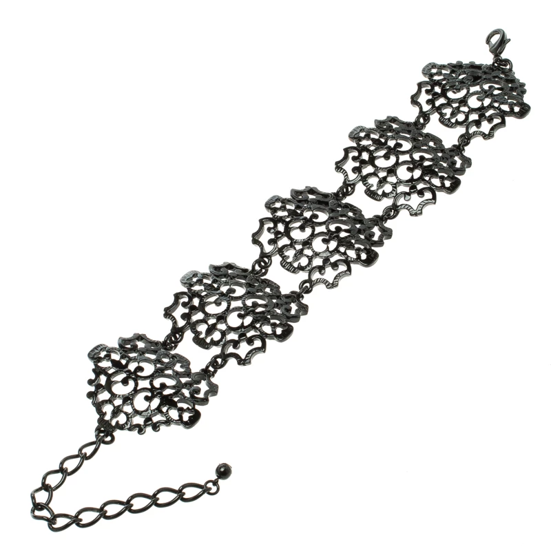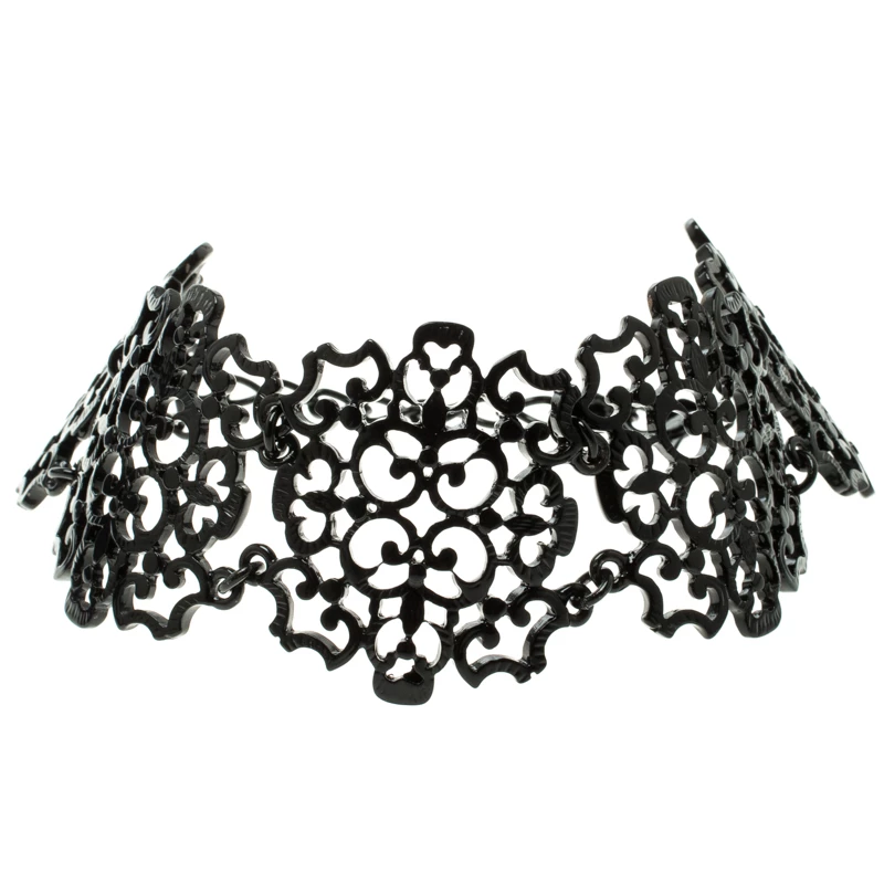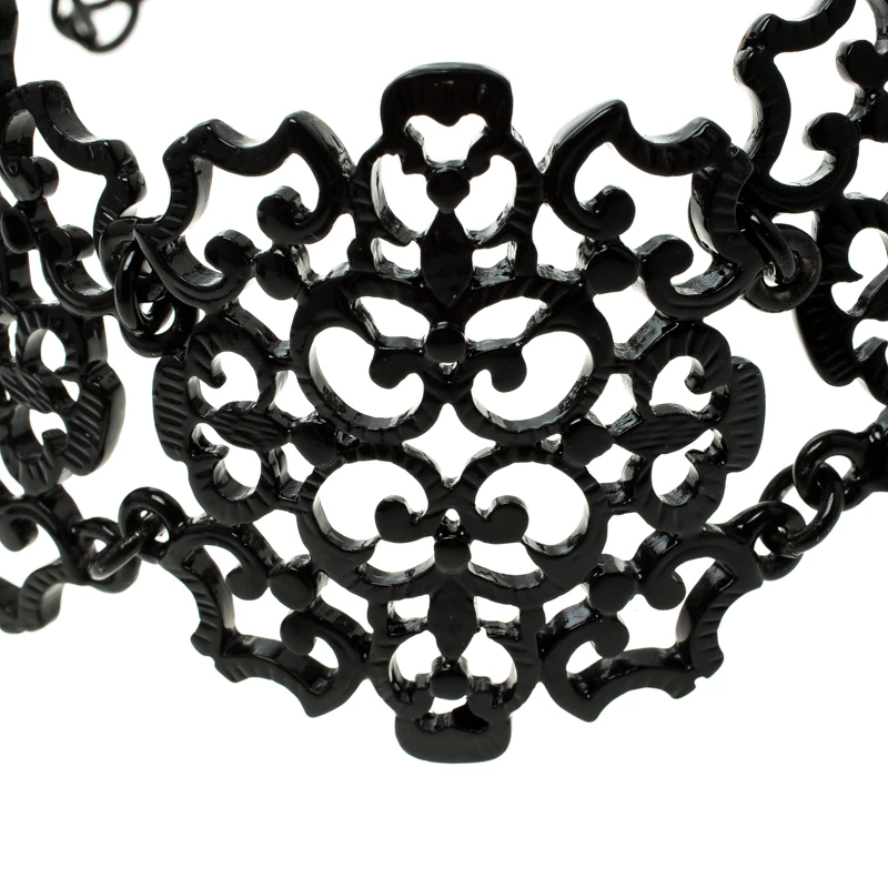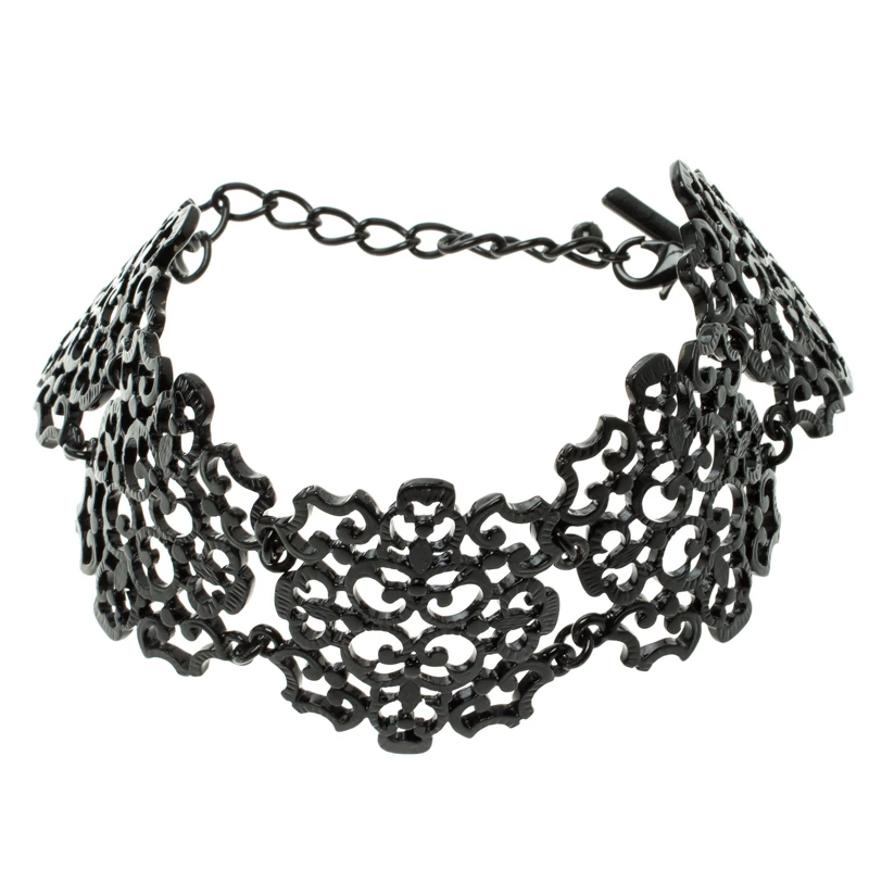 Opt for this chic and bold choker necklace this season from the house of Oscar De La Renta. It features a lace style, black coated metal body and secured with a lobster clasp closure that can be adjusted as required. Wear this beauty with plunging necklines or off-shoulder silhouettes for a trendy look.