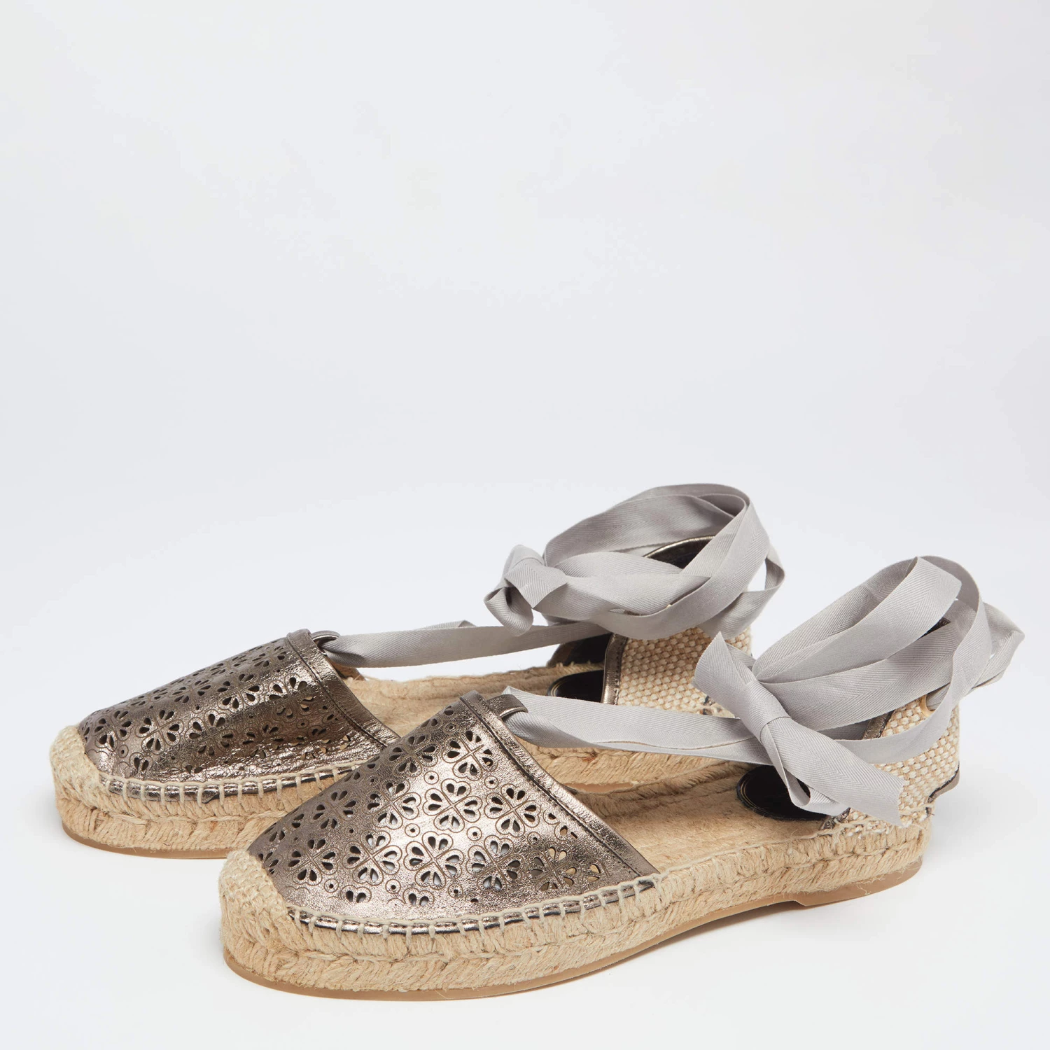 These Adriana espadrilles from Oscar de la Renta are sure to add an element of fun to your dressing. With a suede outward appearance, the soles are traditional jute style. These espadrilles feature laser-cut detailing on the uppers and self-tie ankle wraps. They come equipped with comfortable insoles. Wear these on a casual day out with friends and you are sure to receive a lot of compliments.