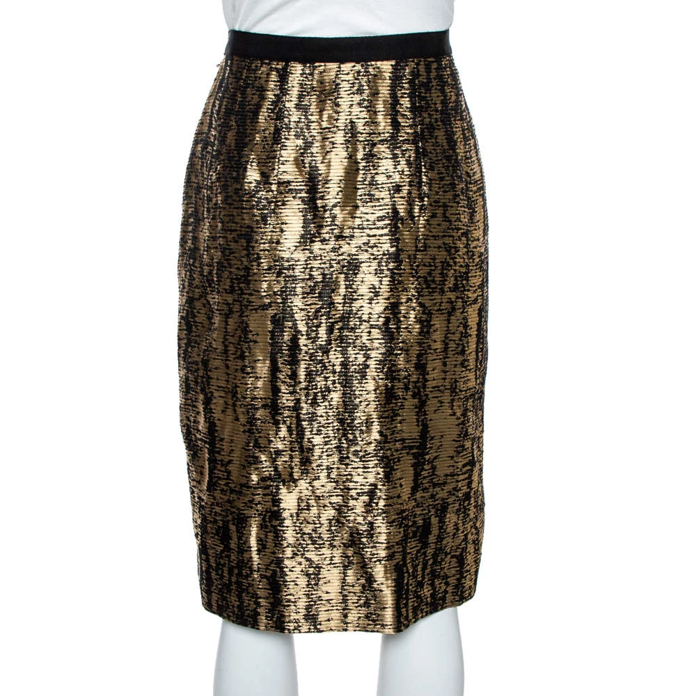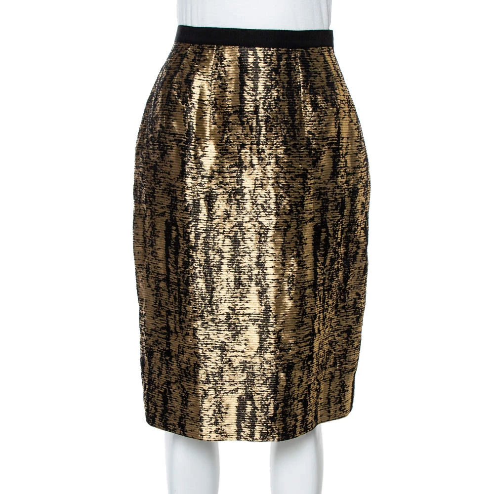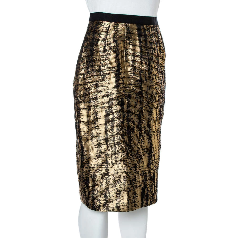 This lovely skirt comes from Oscar de la Renta. It is designed to deliver a touch of femininity and effortless style. Crafted from quality materials. It comes in a lovely metallic shade and features a jacquard texture throughout the exterior. They are styled with zip closure and a knee-length silhouette.