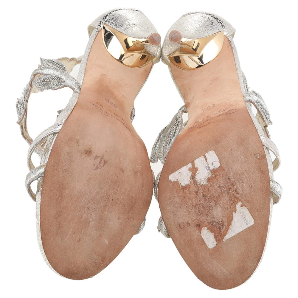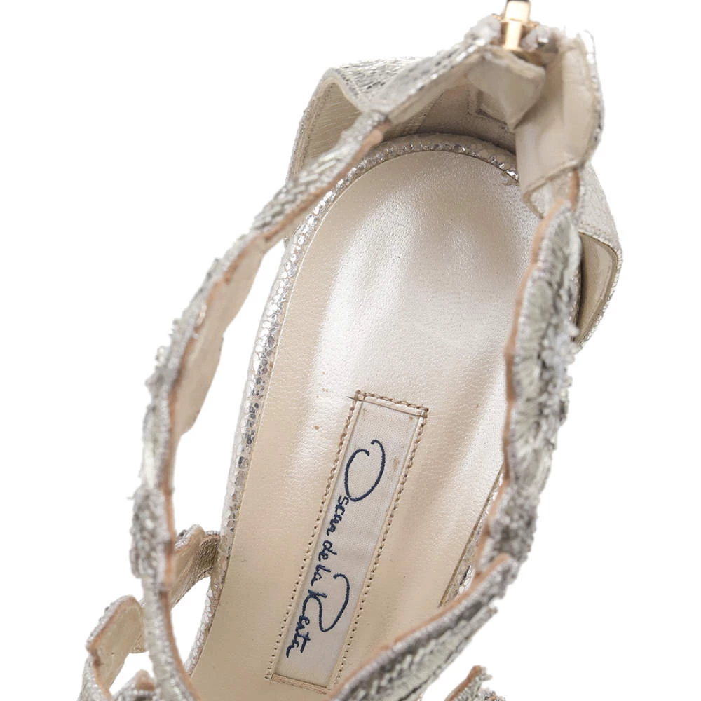 Designed by the House of Oscar de la Renta, these sandals lend a dramatic touch and luxurious edge to your attire. They are beautifully made using metallic-gold leather with intricate embroidered cut-out details decorating the upper. Their counters are equipped with a zip-type closure. Flaunt your exquisite styling choices as you wear these sandals.