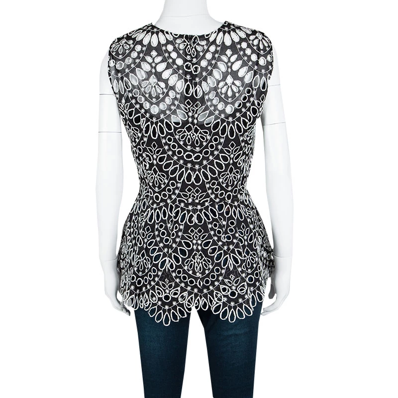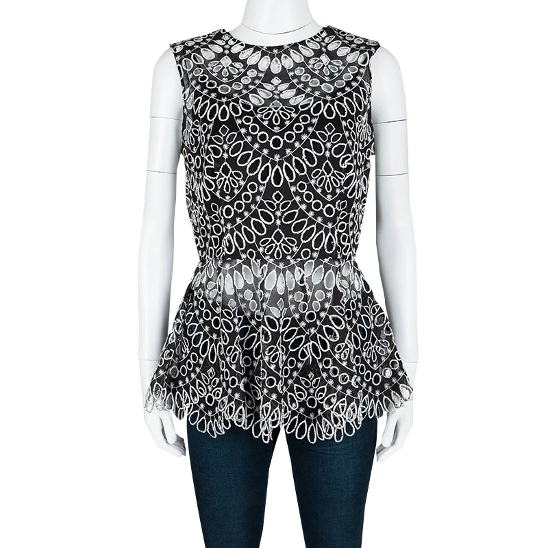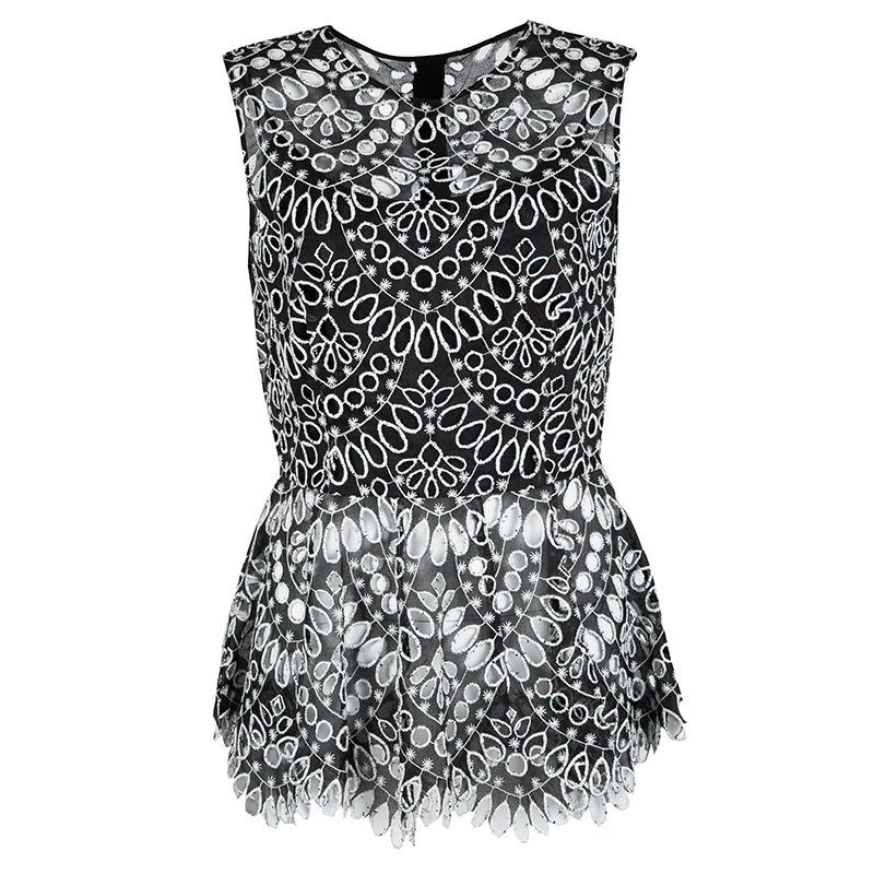Luxuriously cut from silk and styled as a sleeveless, this Oscar De La Renta top is simply a must-have! The monochrome top carries a peplum silhouette with eyelet detailing and a back zipper.