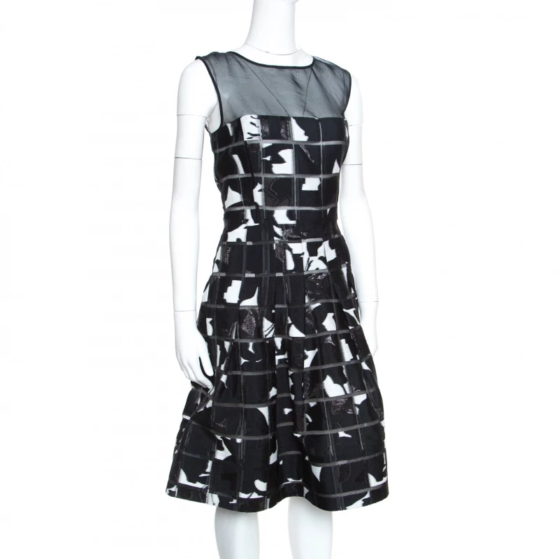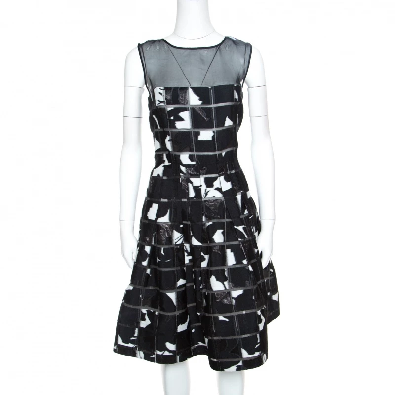 This dress from Oscar de la Renta is as delighting as it is gorgeous and stylish at the same time. Made from quality fabrics, the dress flaunts mosaic patterns all over, a sheer yoke and a skirt that falls to the knees. Designed to perfection, this dress will look great with both heels.