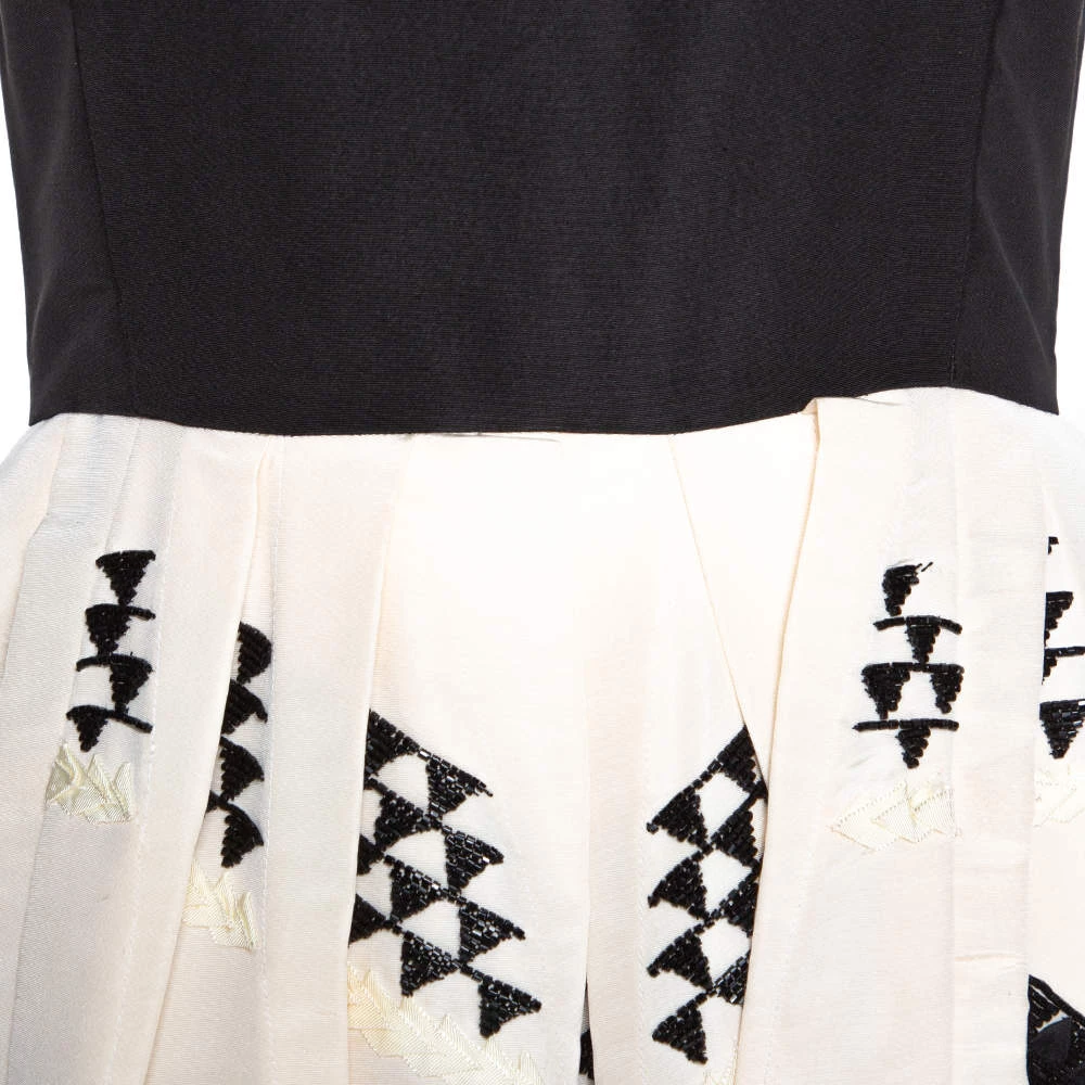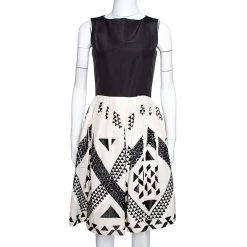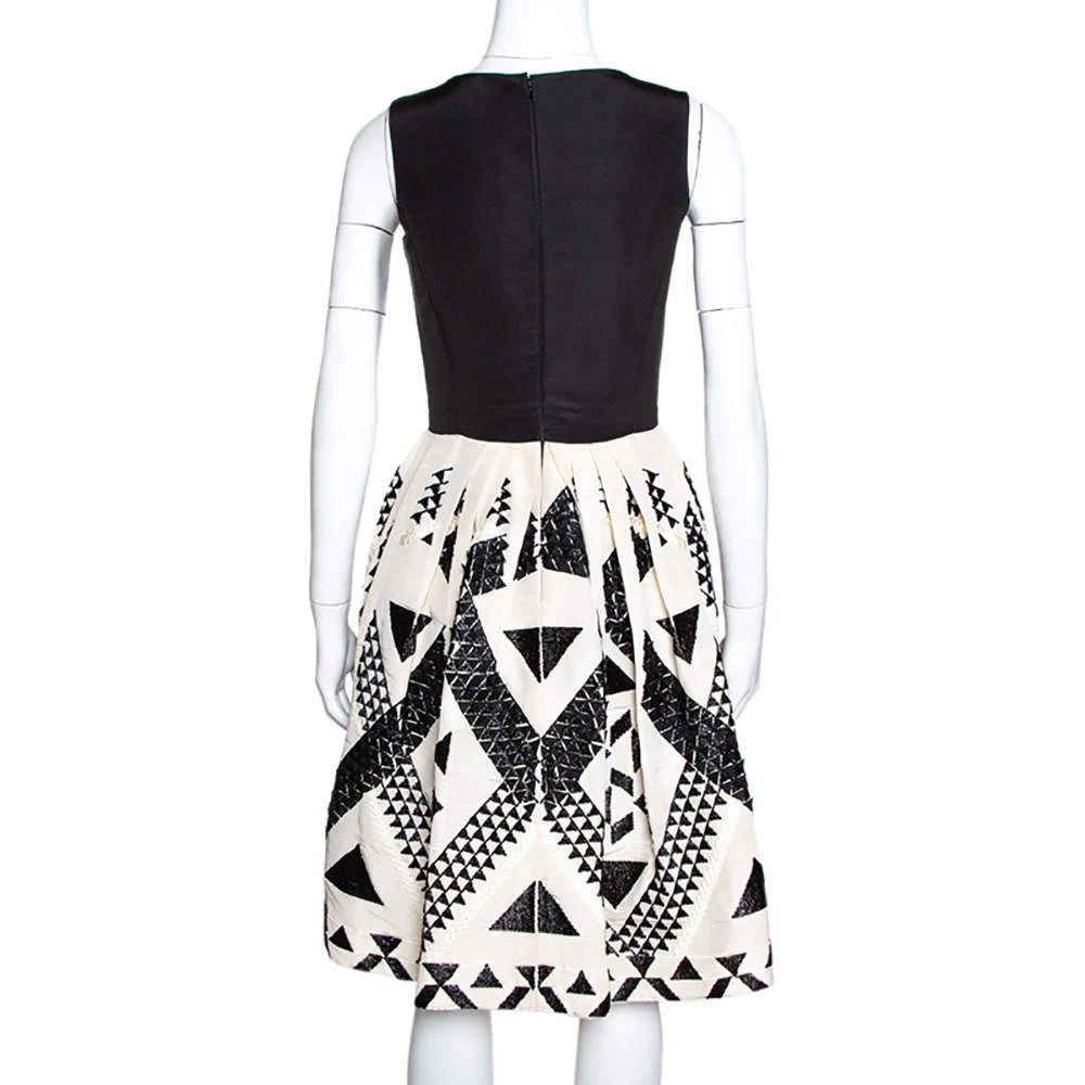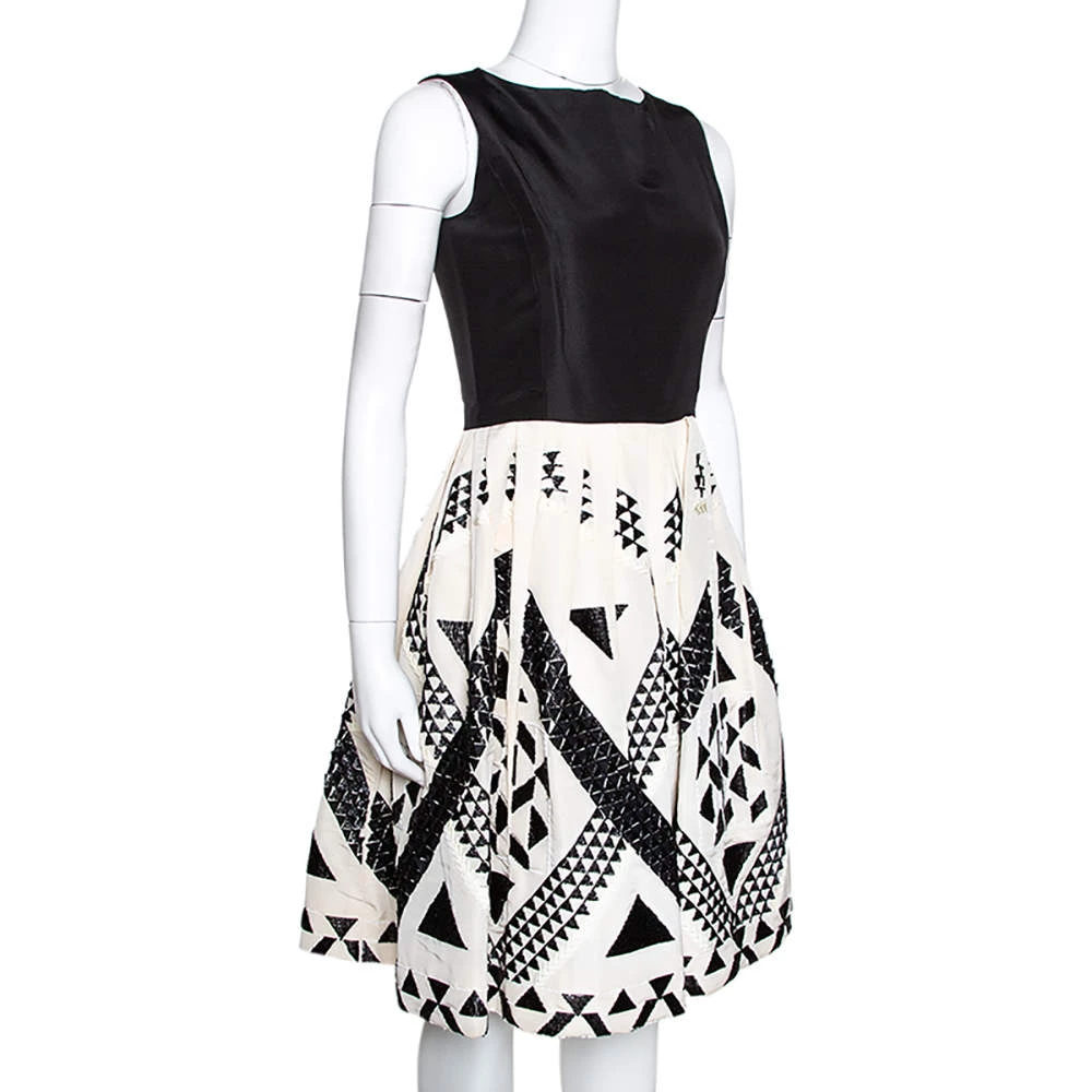 This Oscar de la Renta ensemble is a true example of the brand’s sophisticated designs. Look vibrant and sport a confident look with this cool sleeveless dress. Crafted from 100% silk, it comes in a monochrome color scheme. It is styled with a pleated skirt embellished with beads to form a geometric pattern that adds interest. It is styled with zip closure, two pockets and a tailored fit.
