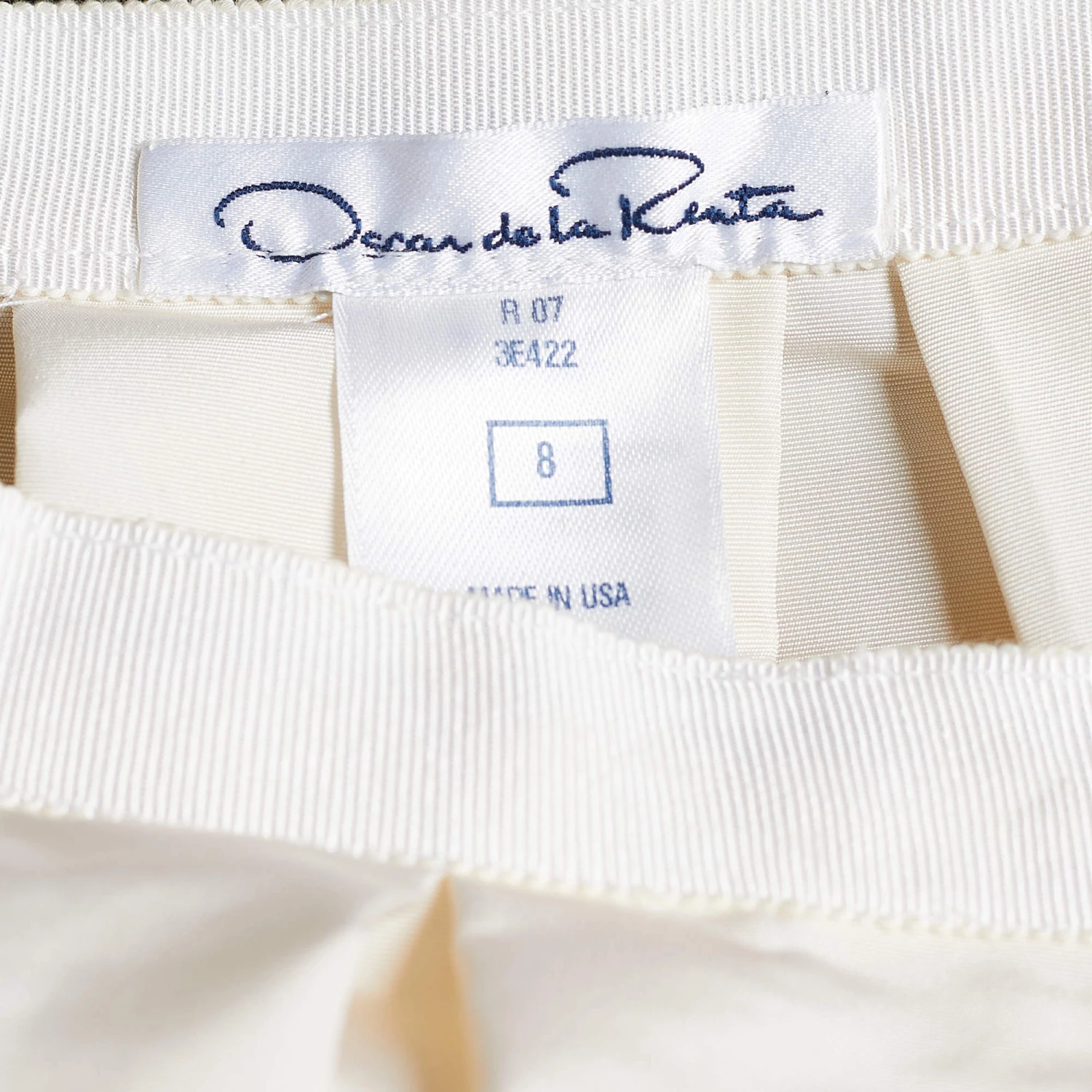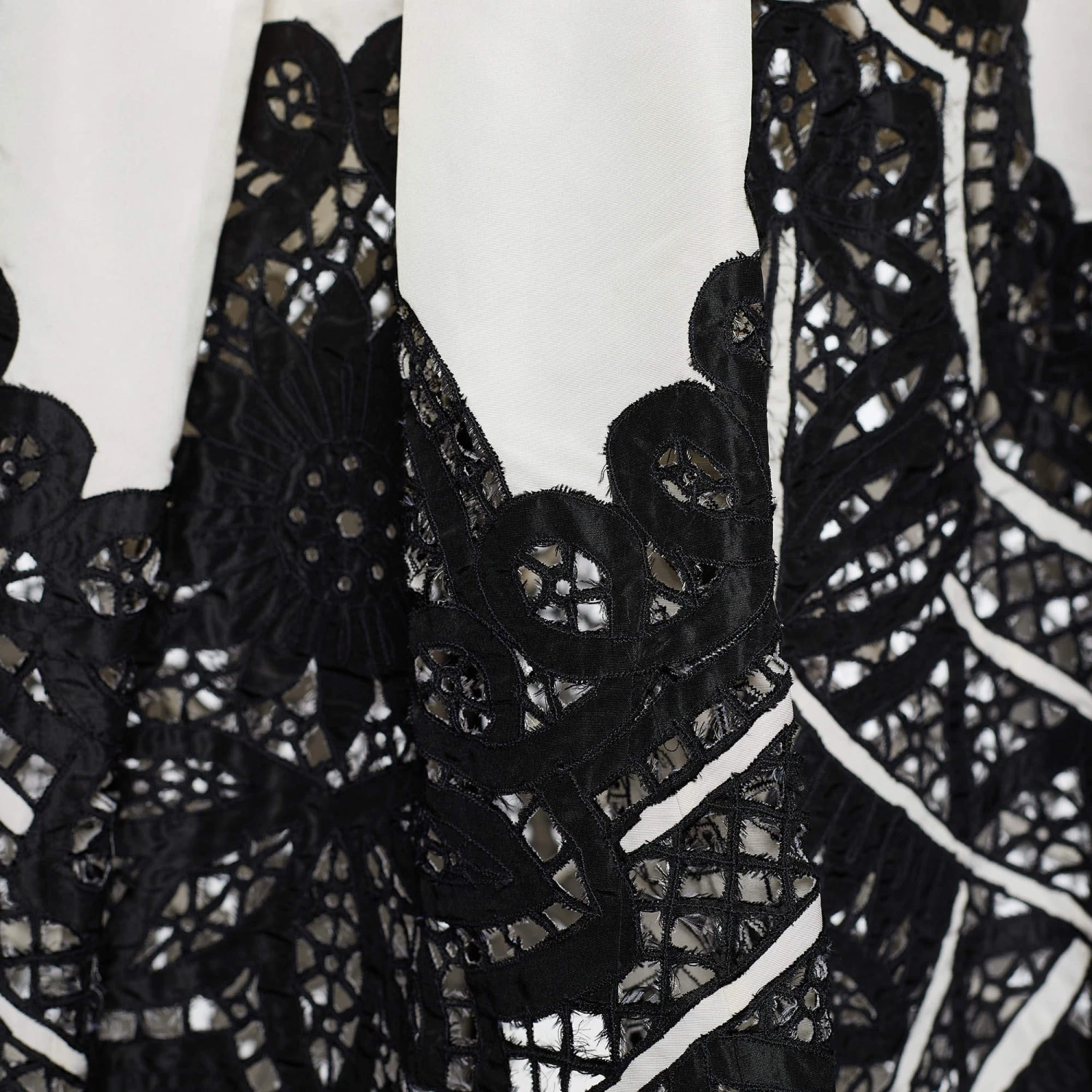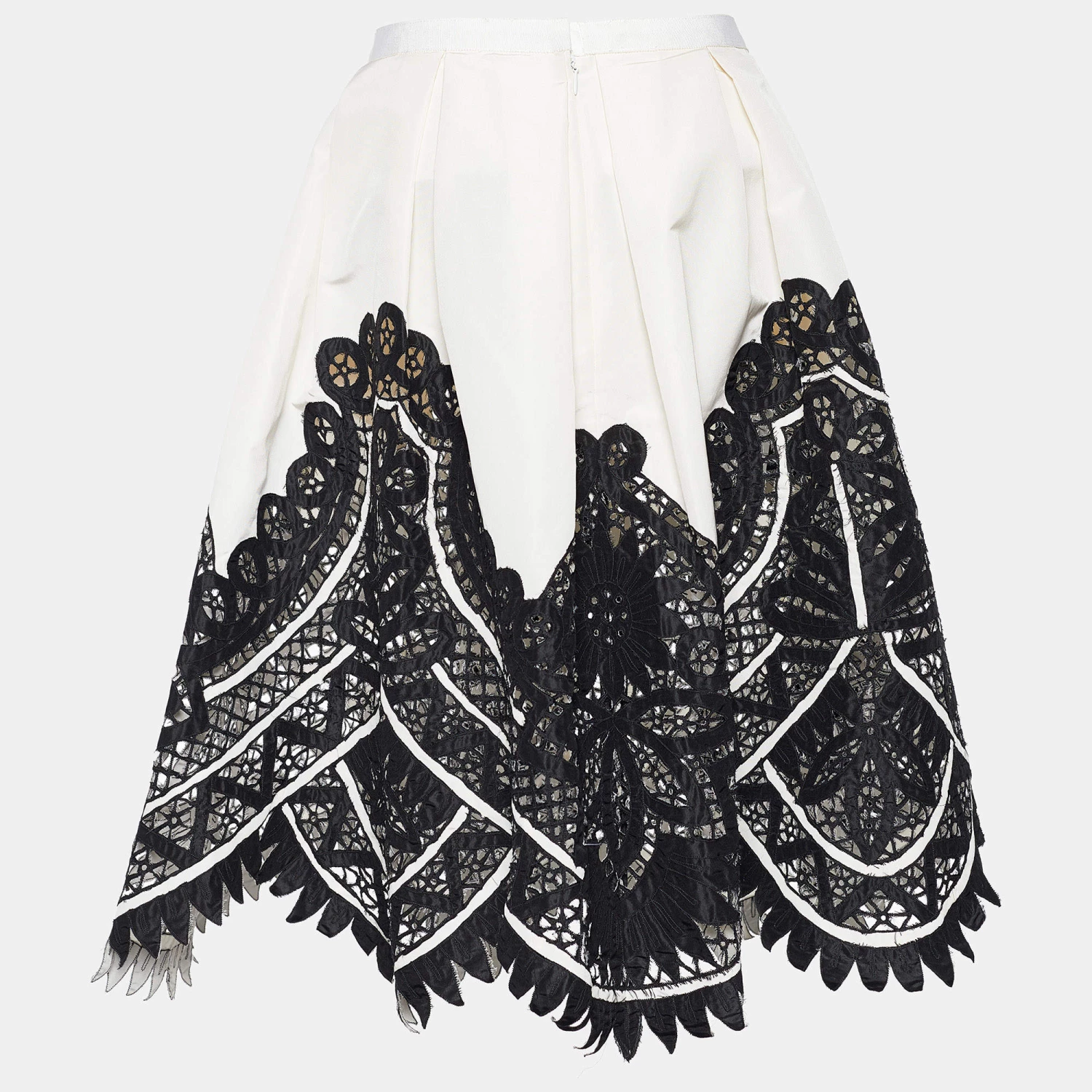 Skirts like these never go out of style. With its contrasting silhouette and vintage aesthetic, it is easy to fall in love with this skirt from Oscar de la Renta. It is cut from monochrome silk, embellished with black lace appliques, and finished with pleated detailing. A concealed zipper is added for fastening.