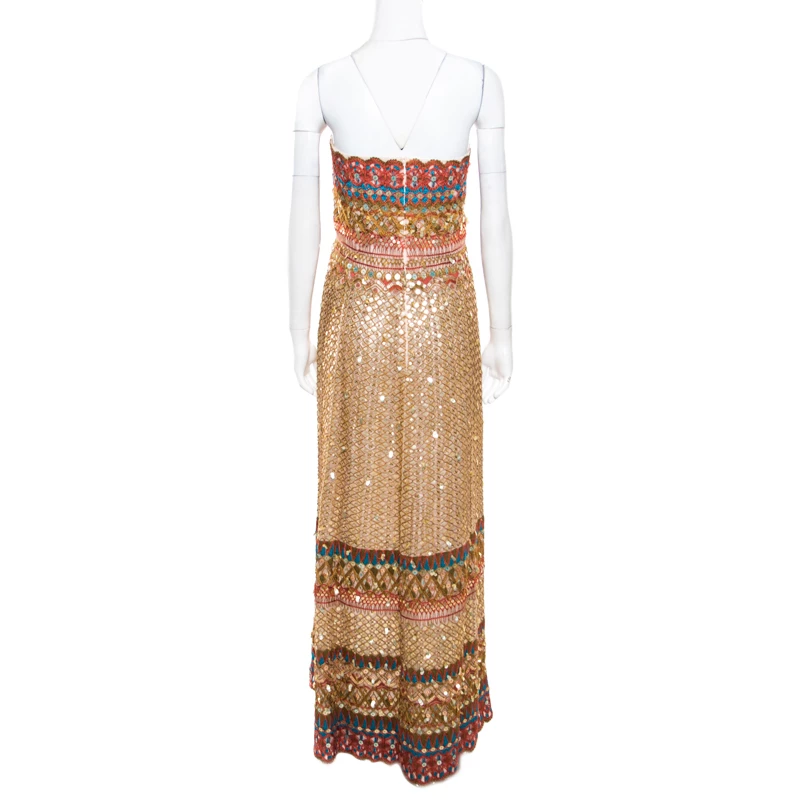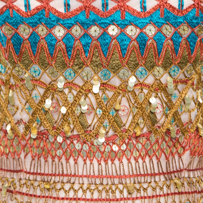 From Oscar de la Renta’s Spring 2010 Ready-To-Wear collection comes this dazzling gown. It is made from silk and covered in colourful embroidery and sequins to look as though it were something an Egyptian queen would wear.
