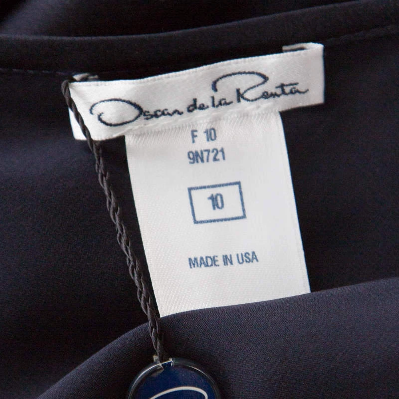 Artistically designed to make you look super stylish, this blouse from Oscar de la Renta is a must buy! The navy blue creation is made of 100% silk and features a chic silhouette. It flaunts a cowl neck and long sleeves. It is sure to lend you a great fit and will look best with slim-fit pants and pointed stilettoes.