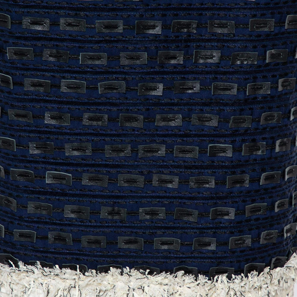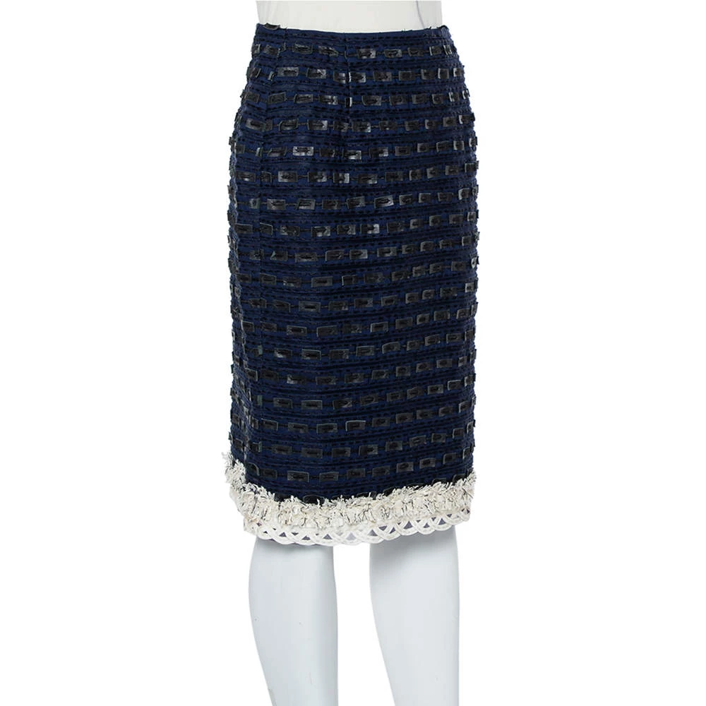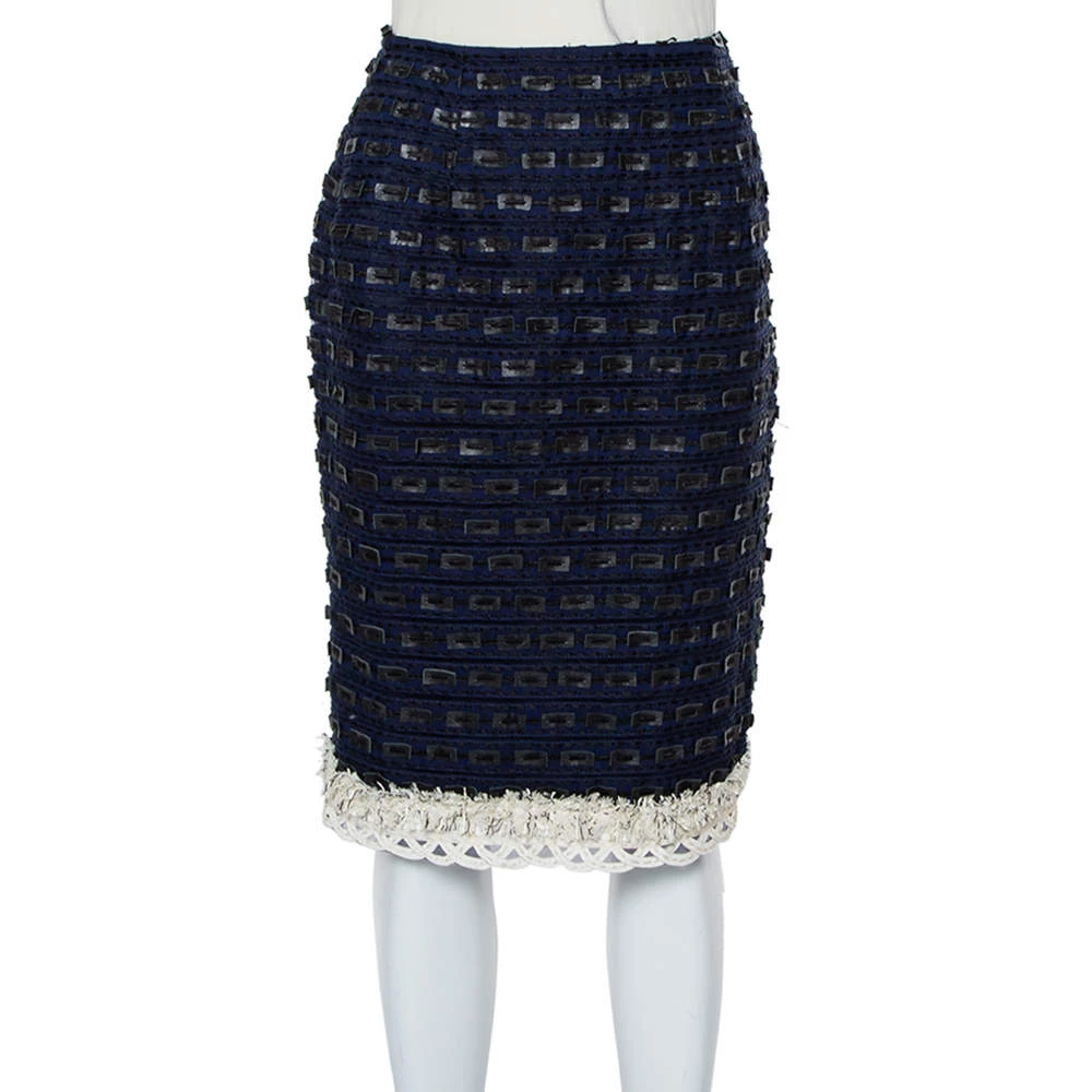 Look gorgeous and stylish with this unique skirt designed by Oscar de la Renta. Crafted from synthetic and faux leather trim, this piece will make any ensemble shine. Break all the rules in this edgy, chic, and show-stopping navy blue skirt that is sure to make your presence felt.