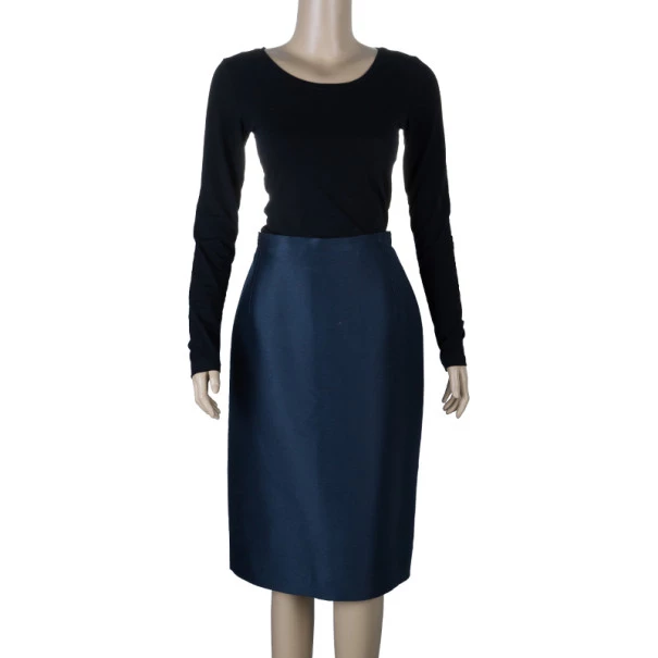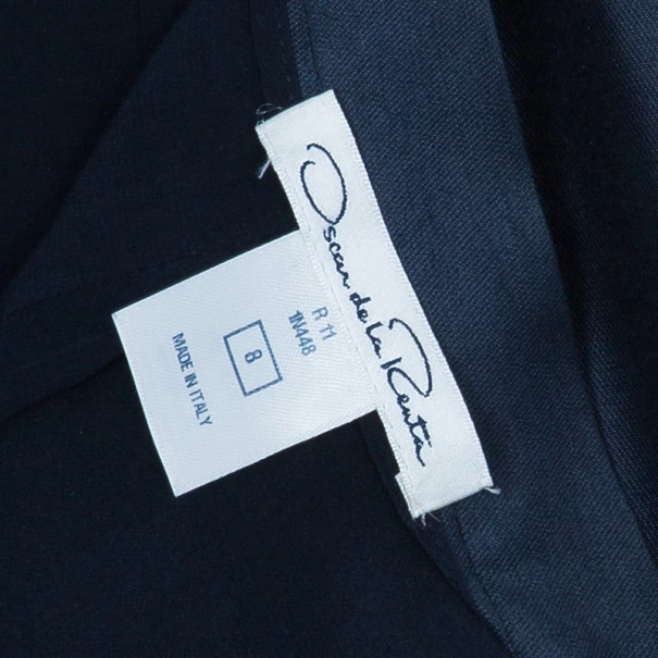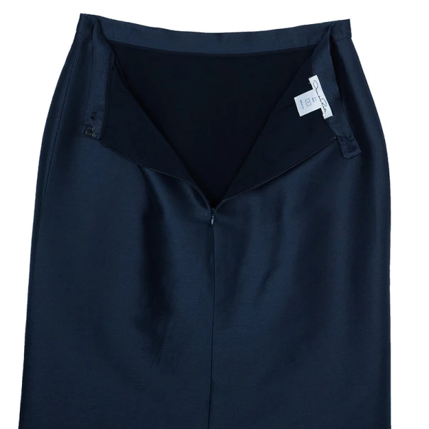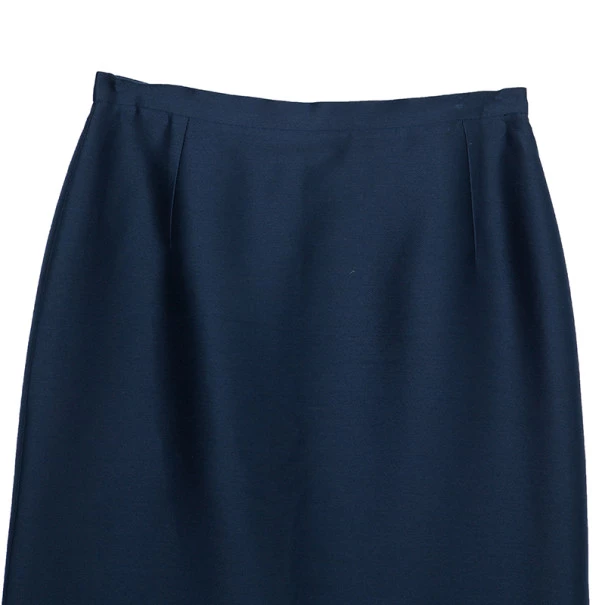 Achieve an elegant look with this Oscar de la Renta Navy Blue High Waist Skirt. This stretch-knit skirt features an elasticated waist, pointelle trims and concealed back zip fastening.
