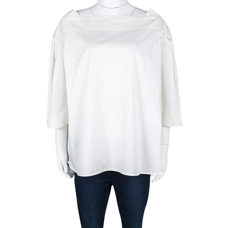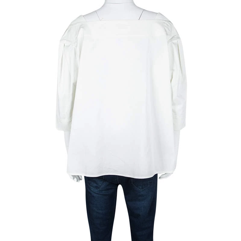 How pretty is this blouse from Oscar de la Renta! This off-white blouse delights with puffed sleeves and a square neck. This creation will look perfect with jeans and trousers.