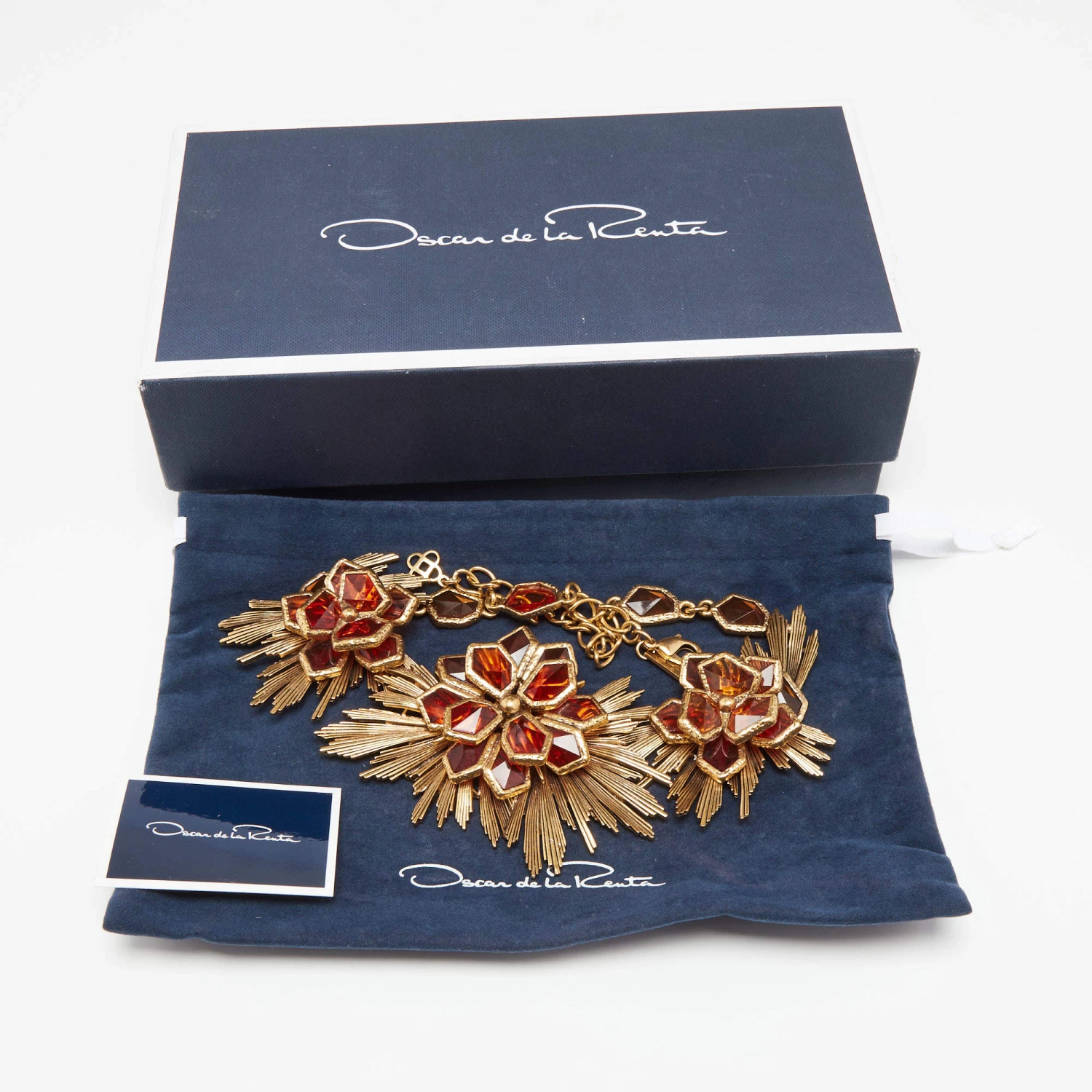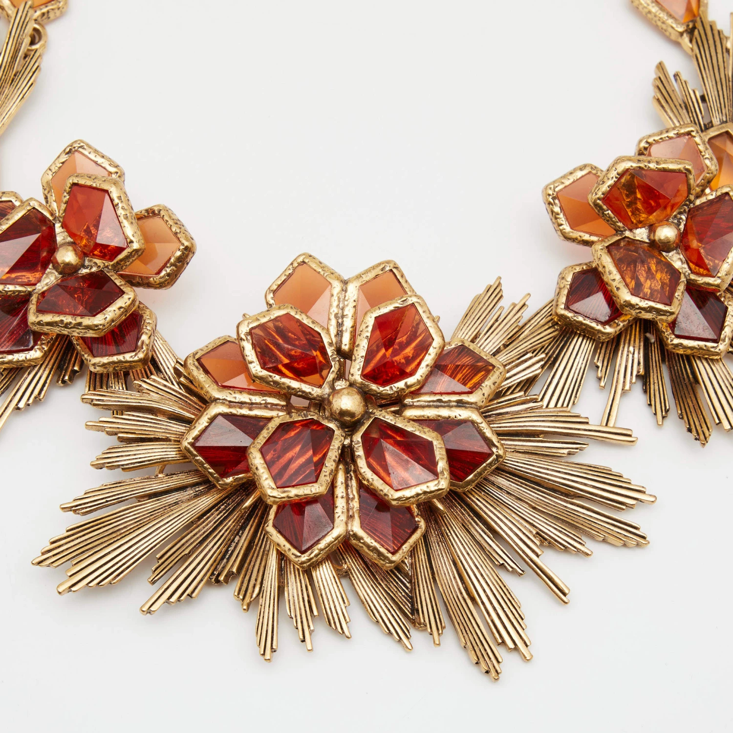 Add the Oscar de la Renta finish to your ensemble of the day with this charm necklace. Made from gold-tone metal, it has floral motifs enhanced with crystals. A lobster clasp completes the design.