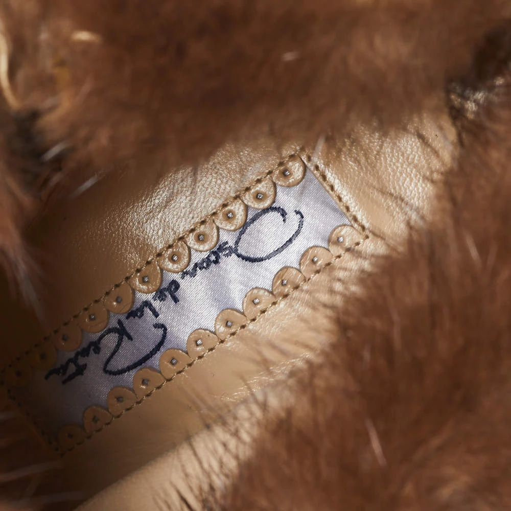 Looking for more ways to flaunt your style quotient? Get these fine boots from Oscar de la Renta. These boots are perfectly crafted from supreme quality suede and mink fur and elevated on 10 cm heels. Let your fashion sense speak for you as you wear these trendy that comes in a gorgeous shade of black.