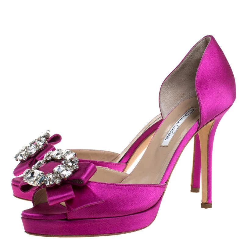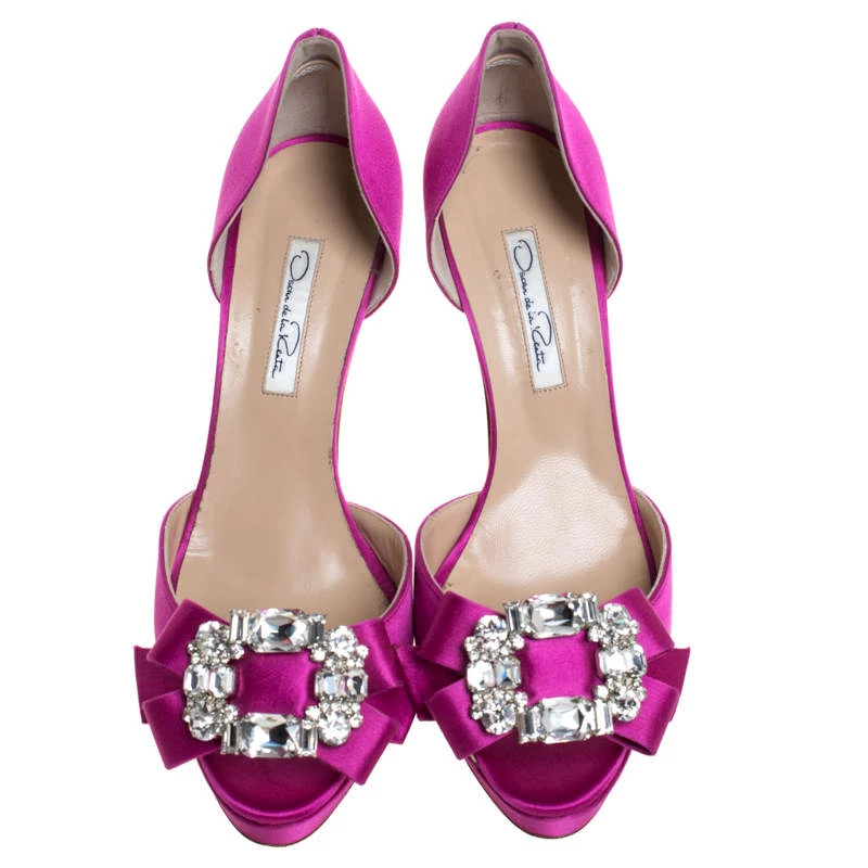 Let your feet do all the talking as you flaunt these fabulous sandals from Oscar de la Renta. These satin shoes will make you look confident and uber-stylish. They feature open toes, embellished bow details and 10.5 cm heels to keep you at the top of your style game. Wear these pink beauties and look chic no matter what occasion it is.