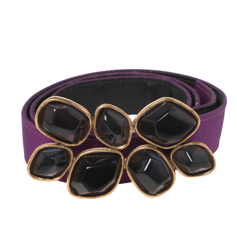 This belt from Oscar de la Renta makes a luxe statement with its design. It is crafted from purple satin and the buckle is a cluster of seven jewels. The belt is not only high on appeal, but is also perfect to fashionably adorn your waist.