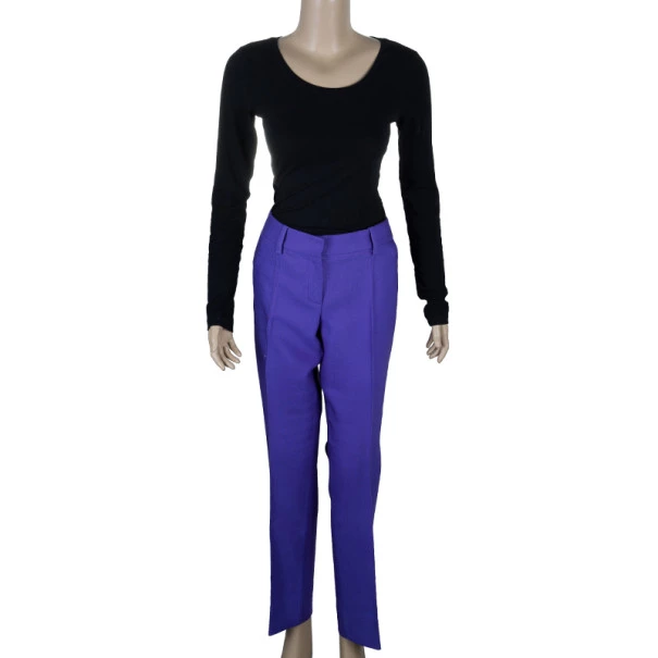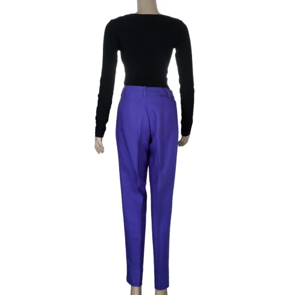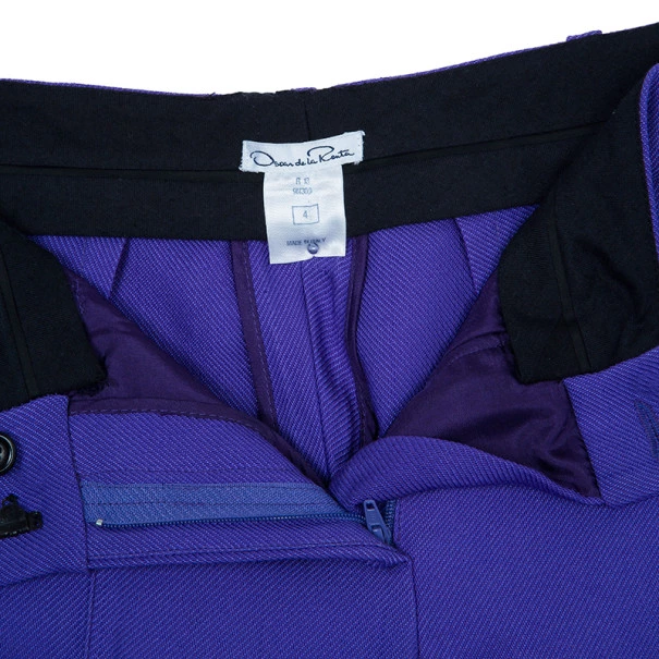 Colorful and fun, are these Oscar de la Renta Purple Tapered Trousers. Crafted from wool, they feature a high waistline, pleated stitched detailing and side zip closure.