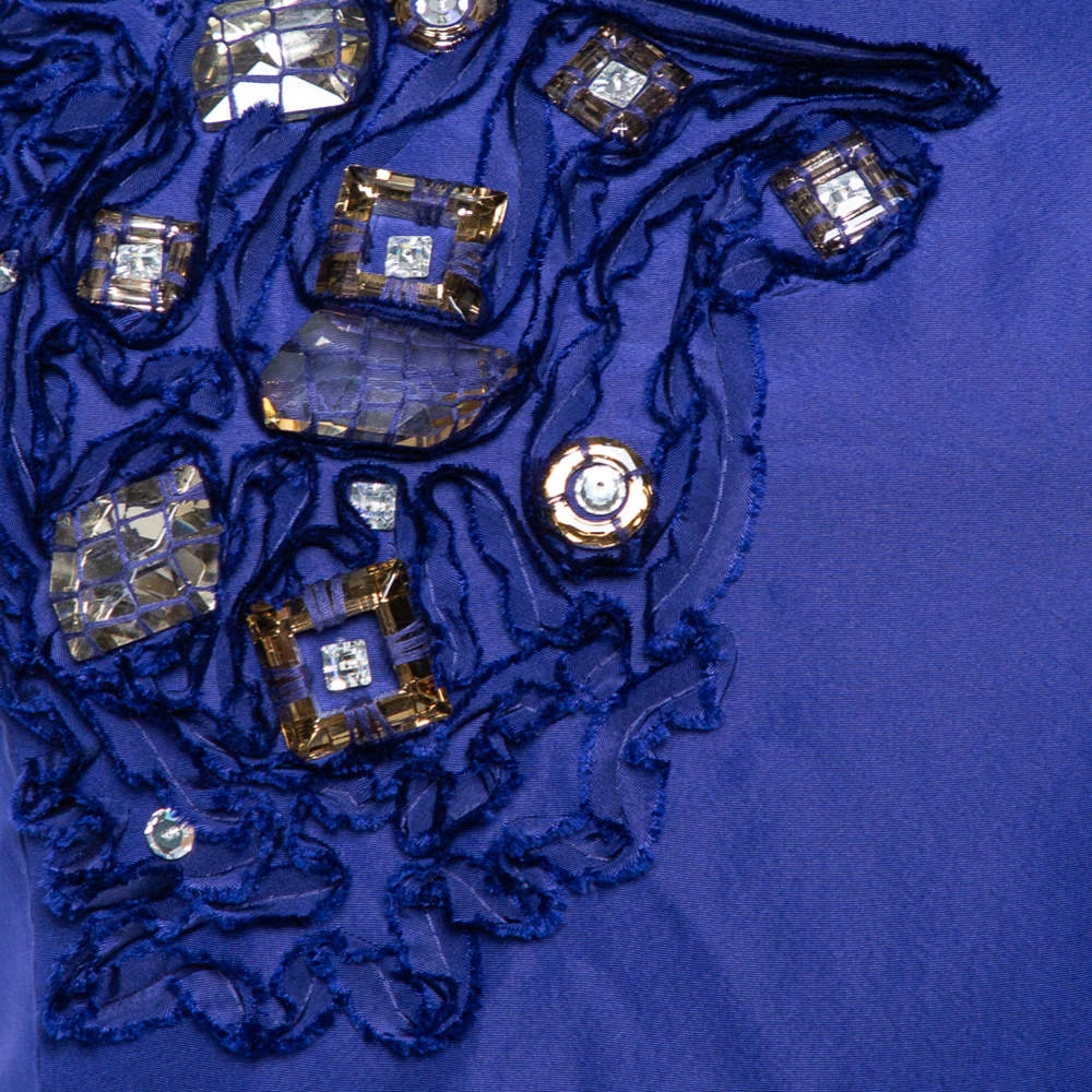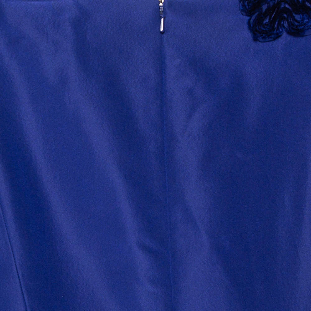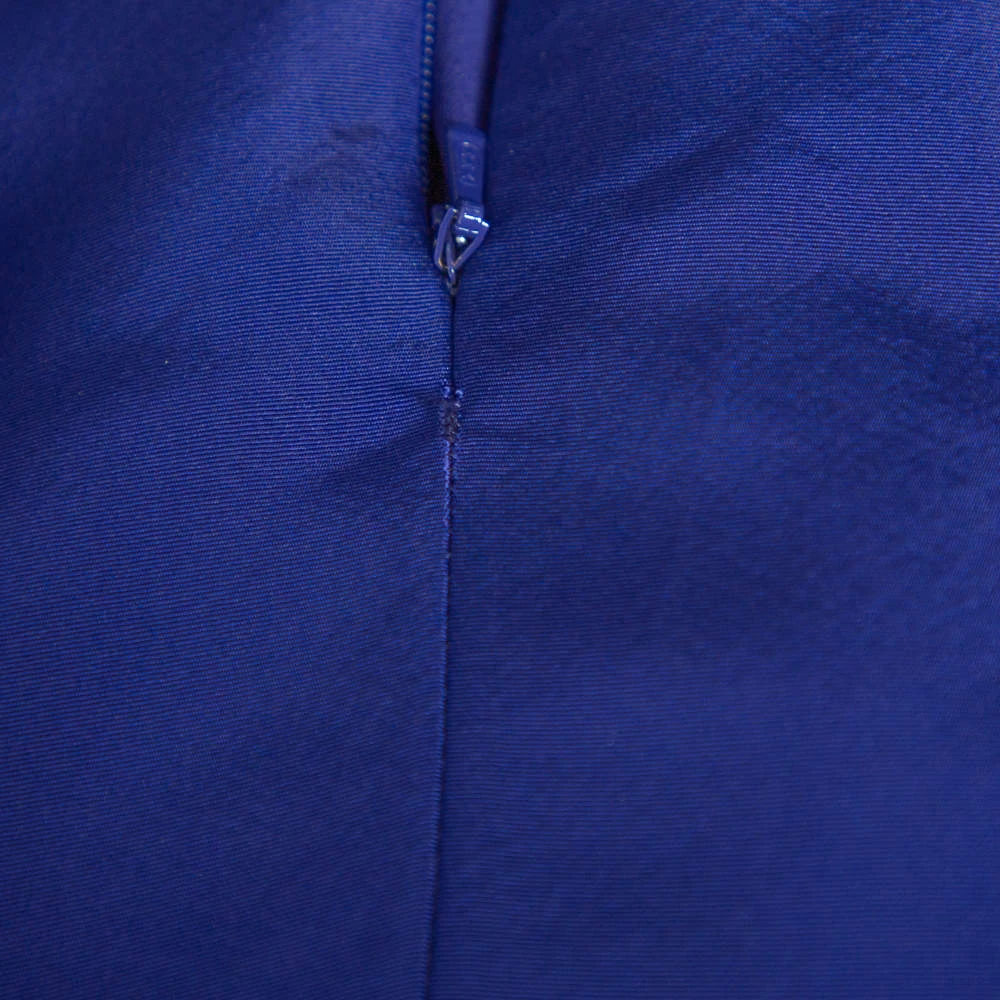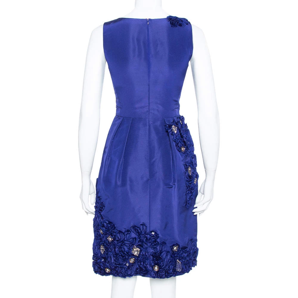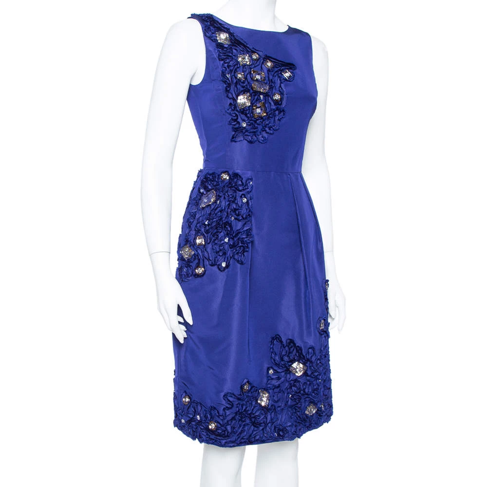 This sleeveless sheath dress from Oscar de la Renta has the power to transform you into a diva! The royal blue creation is made of 100% silk and exhibits a flattering silhouette that is enhanced with a bateau neckline, subtle pleats below the waist, and exquisite embellishments. It is equipped with a concealed zip closure at the back and will work well with pointed stilettoes.