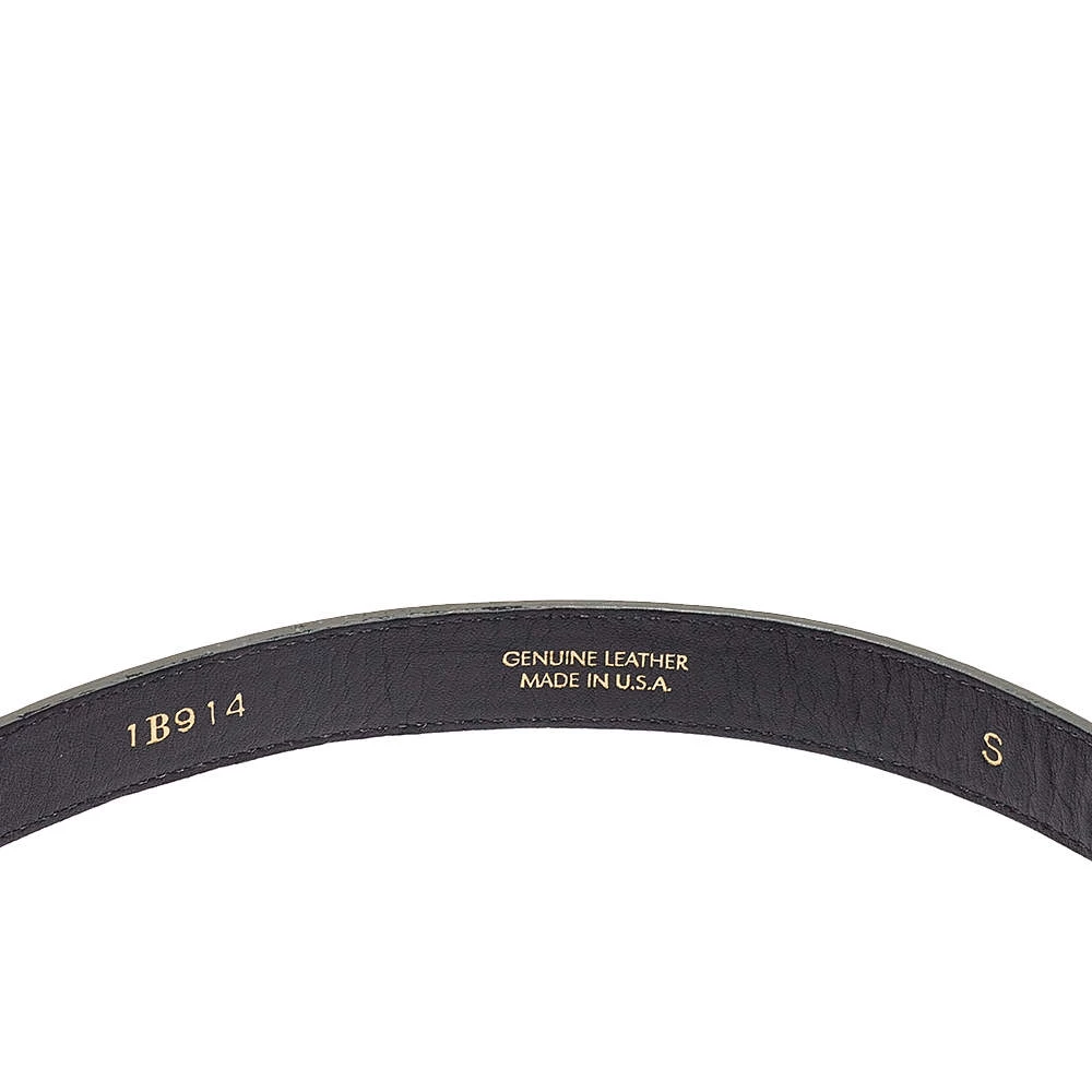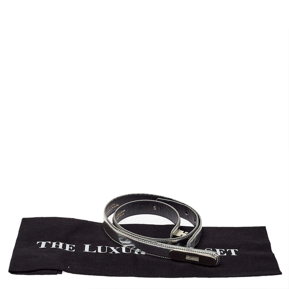 Add this sleek Oscar de la Renta belt to your collection right away. This versatile piece is crafted in a silver-hued glossy leather body and completed with a silver-tone fastener at the center. Perfect for work as well as off-duty looks.